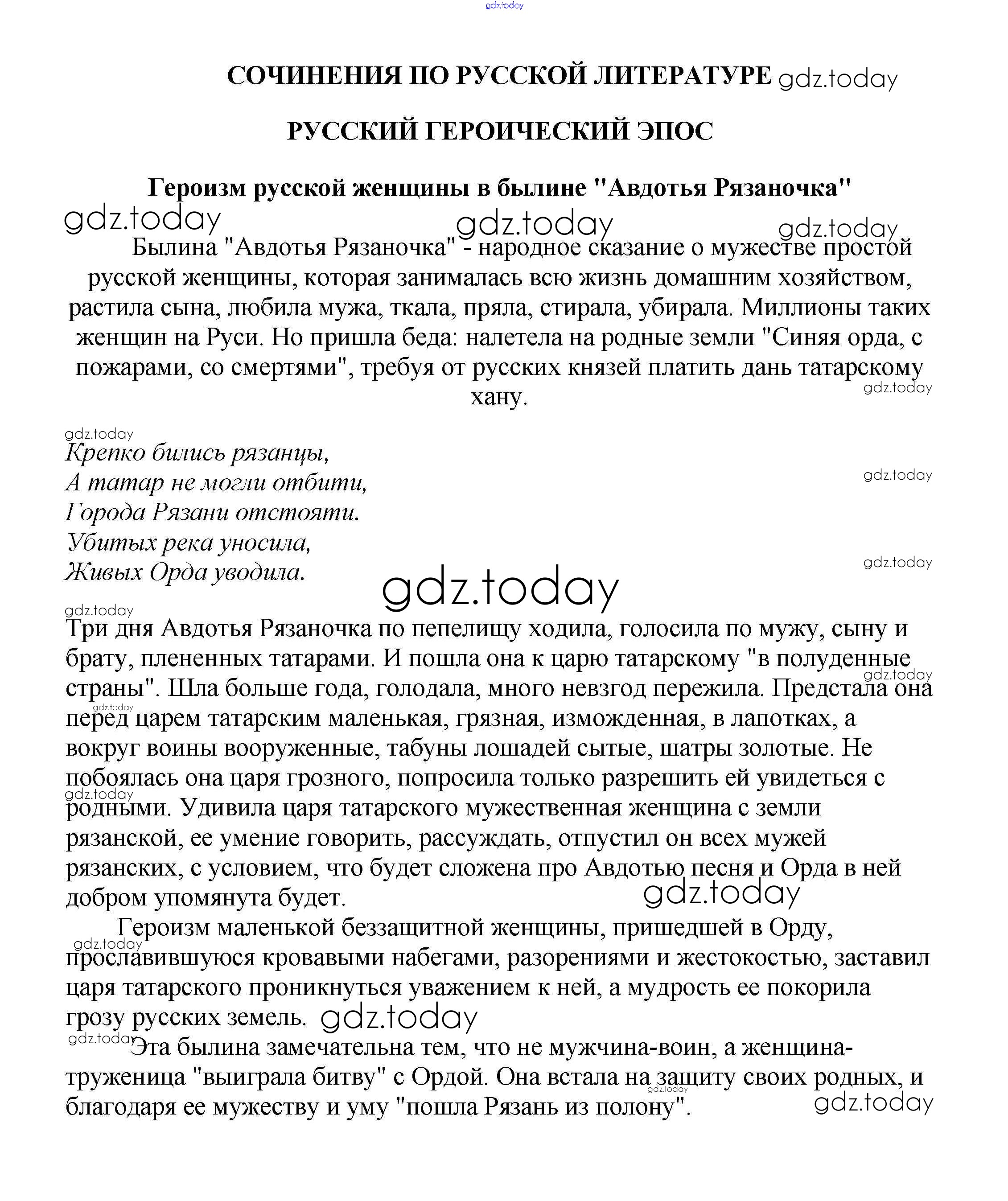 На страницах сайта gdz.today вы найдете учебный и вспомогательный материал, направленный на улучшения знаний школьной программы. ГДЗ - онлайн мир знаний Сочинения по русской литературе 7 класс Героизм русской женщины в былине "Авдотья Рязаночка" Сочинениям по Литературе для 5-10 класса Белик, Музычук Баро-Пресс 2017