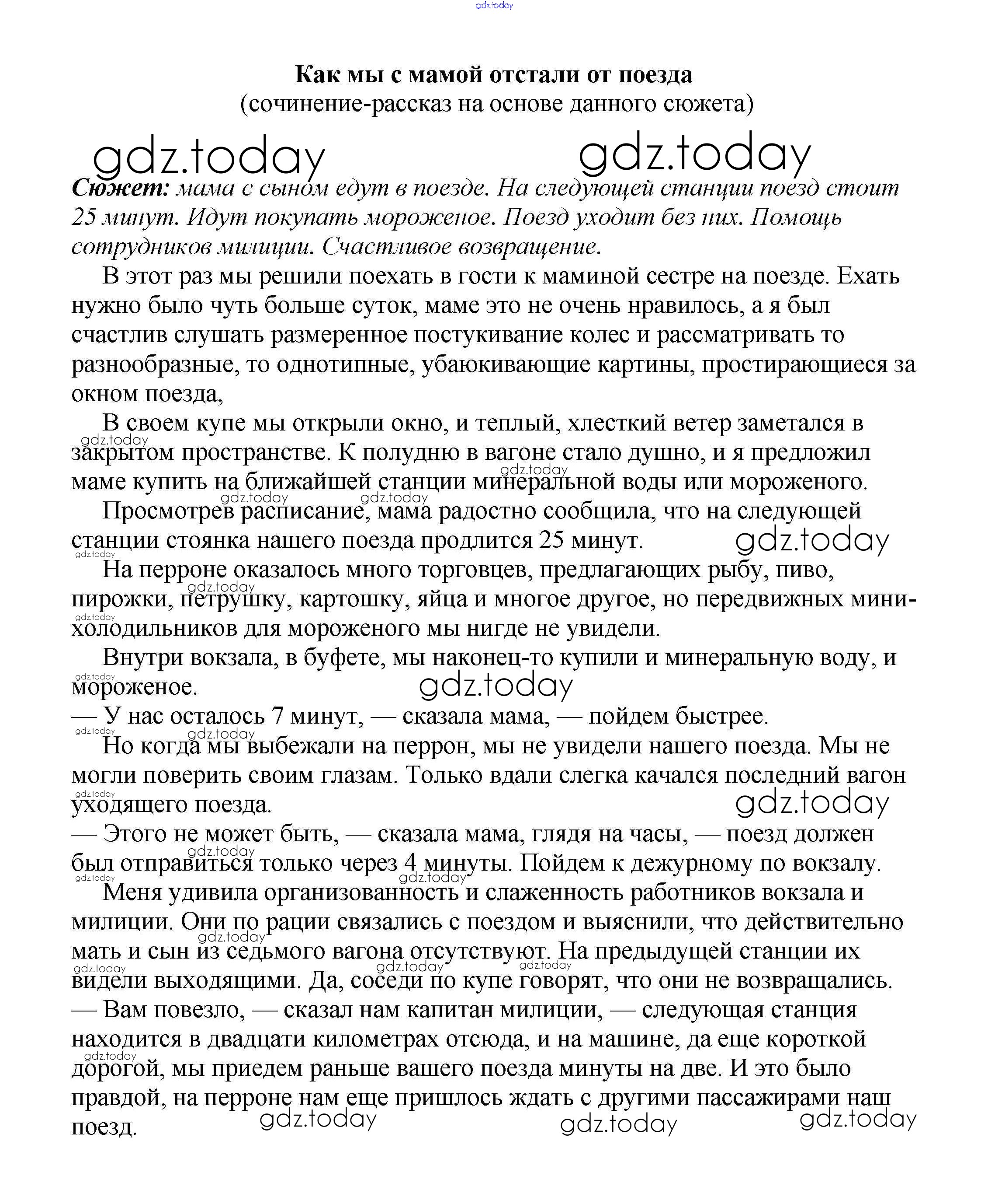 На страницах сайта gdz.today вы найдете учебный и вспомогательный материал, направленный на улучшения знаний школьной программы. ГДЗ - онлайн мир знаний Сочинения на свободную тему 7 класс Как мы с мамой отстали от поезда (сочинение-рассказ на основе данного сюжета) Сочинениям по Литературе для 5-10 класса Белик, Музычук Баро-Пресс 2017