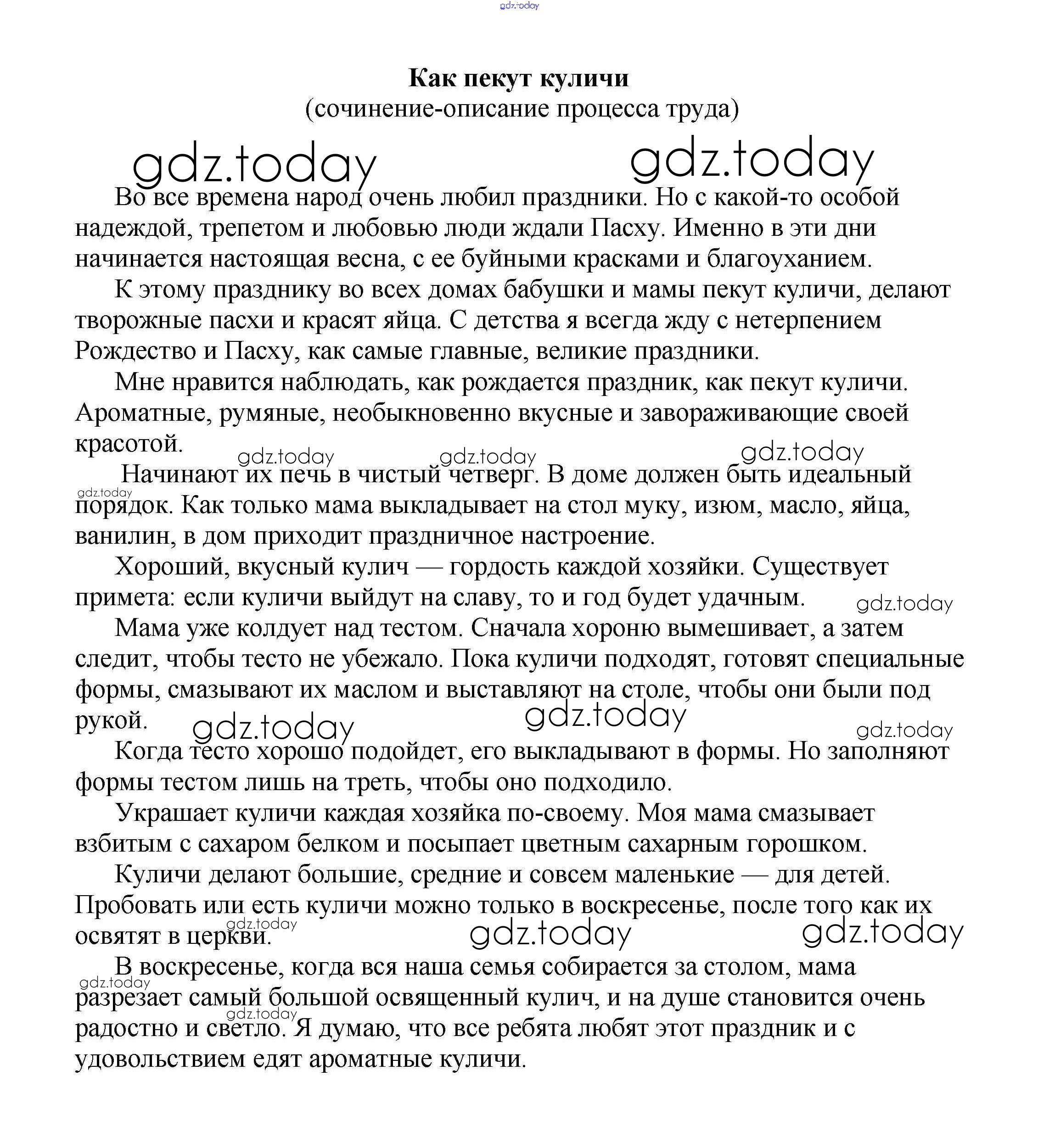 На страницах сайта gdz.today вы найдете учебный и вспомогательный материал, направленный на улучшения знаний школьной программы. ГДЗ - онлайн мир знаний Сочинения на свободную тему 7 класс Как пекут куличи (сочинение-описание процесса труда) Сочинениям по Литературе для 5-10 класса Белик, Музычук Баро-Пресс 2017