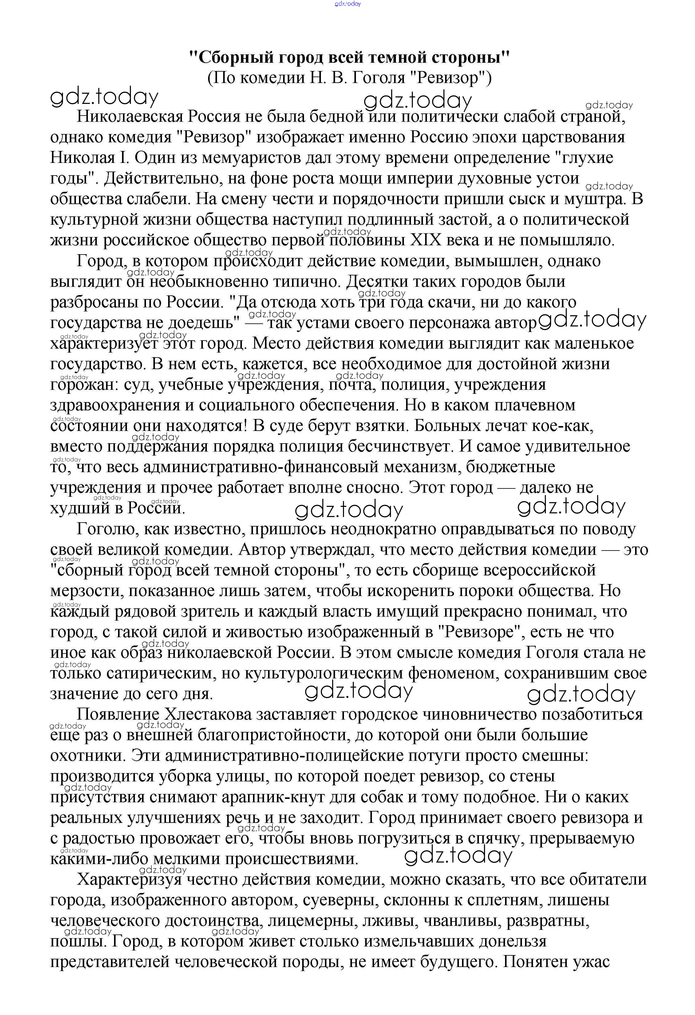 На страницах сайта gdz.today вы найдете учебный и вспомогательный материал, направленный на улучшения знаний школьной программы. ГДЗ - онлайн мир знаний Сочинения по русской литературе 8 класс "Сборный город всей темной стороны" (По комедии Н. В. Гоголя "Ревизор") Сочинениям по Литературе для 5-10 класса Белик, Музычук Баро-Пресс 2017