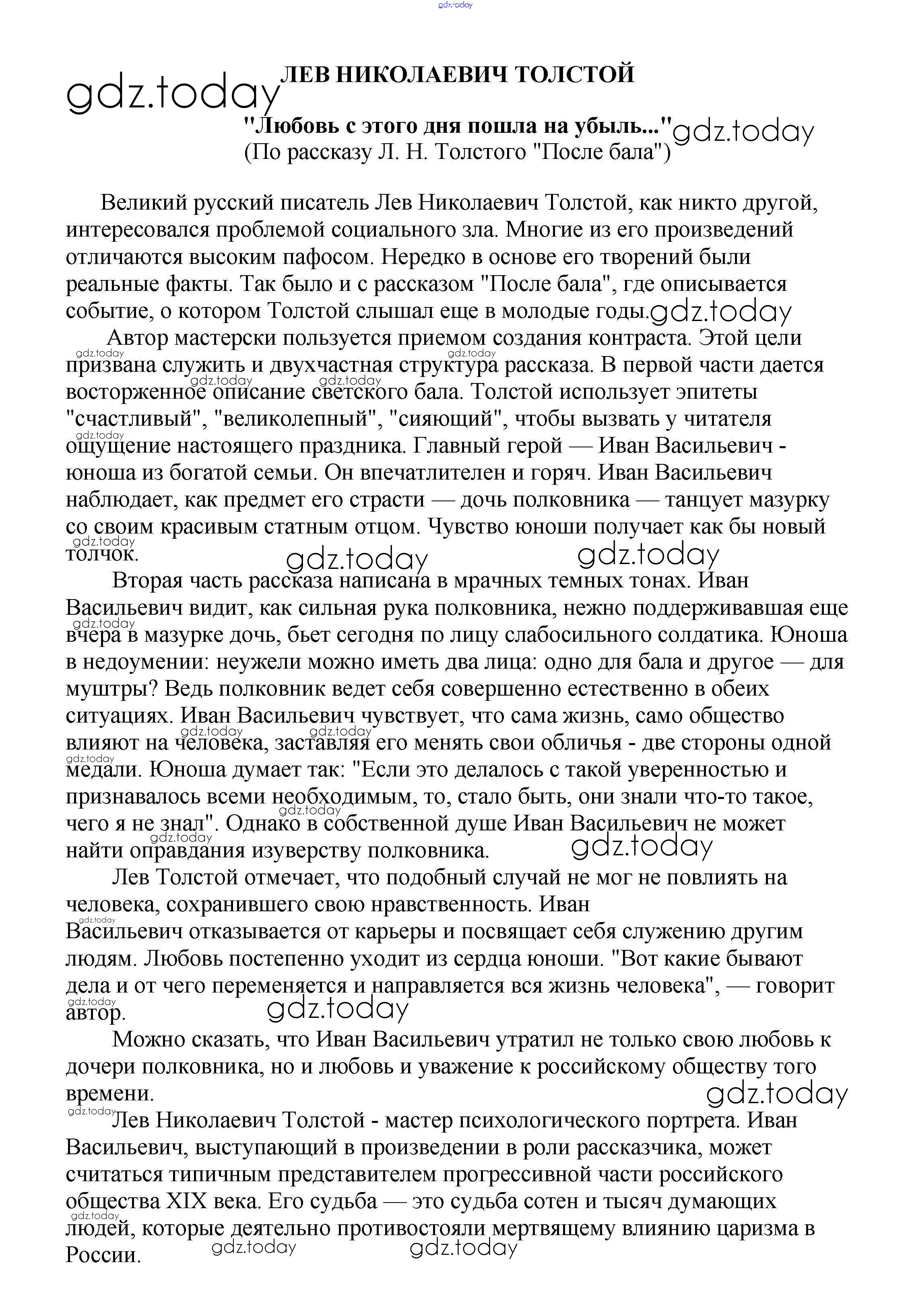 На страницах сайта gdz.today вы найдете учебный и вспомогательный материал, направленный на улучшения знаний школьной программы. ГДЗ - онлайн мир знаний Сочинения по русской литературе 8 класс "Любовь с этого дня пошла на убыль..." (По рассказу Л. Н. Толстого "После бала") Сочинениям по Литературе для 5-10 класса Белик, Музычук Баро-Пресс 2017