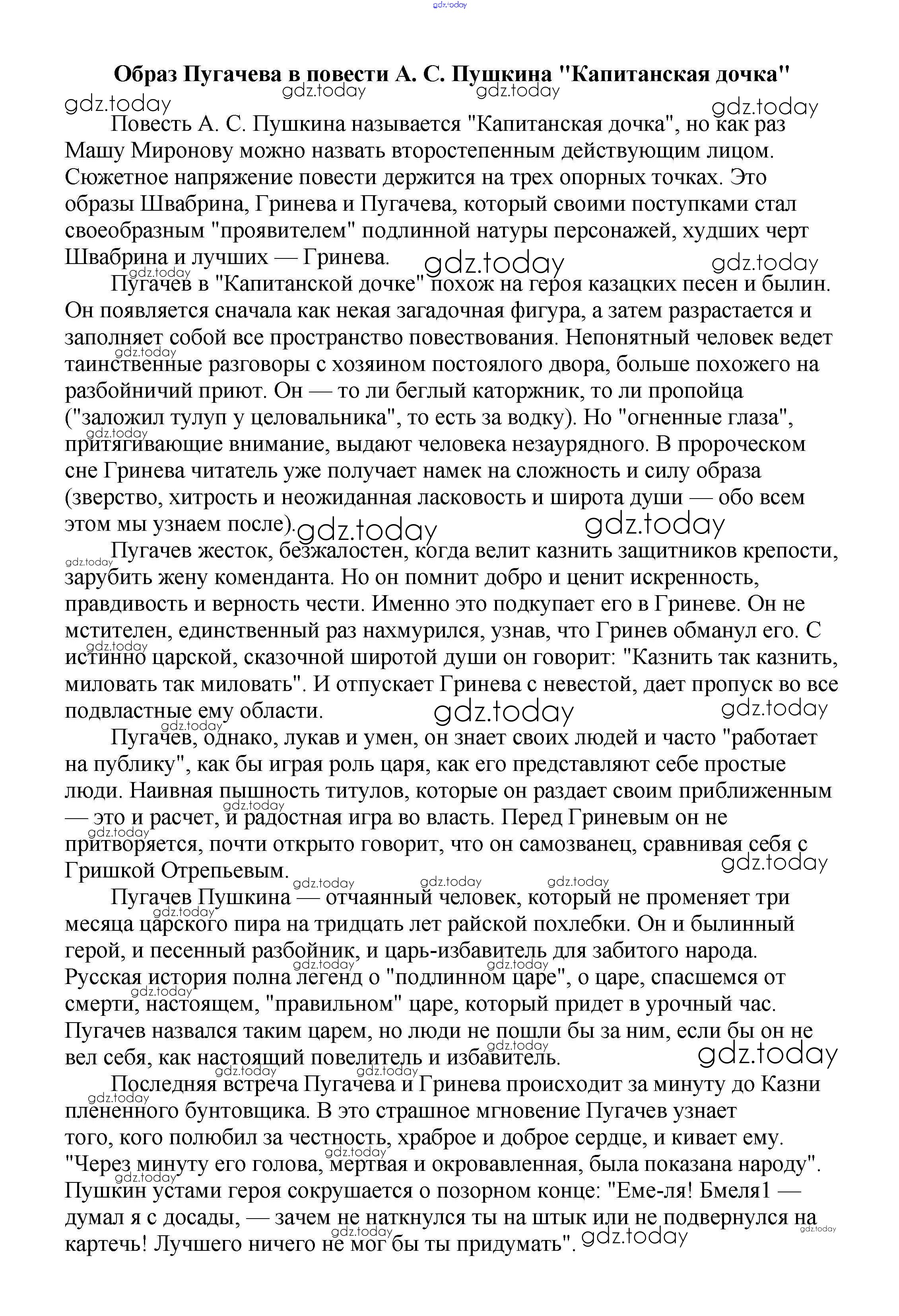 На страницах сайта gdz.today вы найдете учебный и вспомогательный материал, направленный на улучшения знаний школьной программы. ГДЗ - онлайн мир знаний Сочинения по русской литературе 8 класс Образ Пугачева в повести А. С. Пушкина "Капитанская дочка" Сочинениям по Литературе для 5-10 класса Белик, Музычук Баро-Пресс 2017