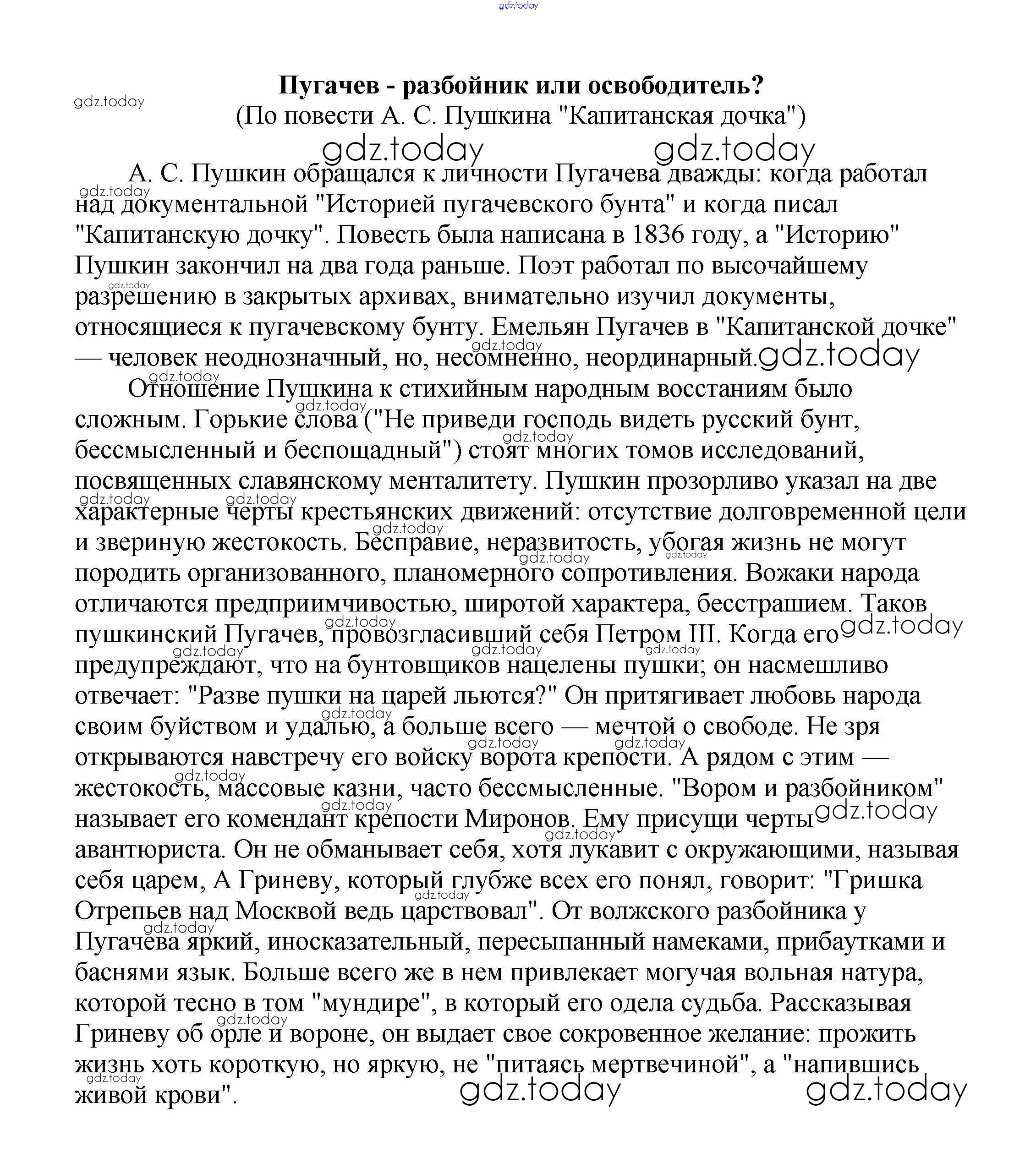 На страницах сайта gdz.today вы найдете учебный и вспомогательный материал, направленный на улучшения знаний школьной программы. ГДЗ - онлайн мир знаний Сочинения по русской литературе 8 класс Пугачев - разбойник или освободитель? (По повести А. С. Пушкина "Капитанская дочка") Сочинениям по Литературе для 5-10 класса Белик, Музычук Баро-Пресс 2017