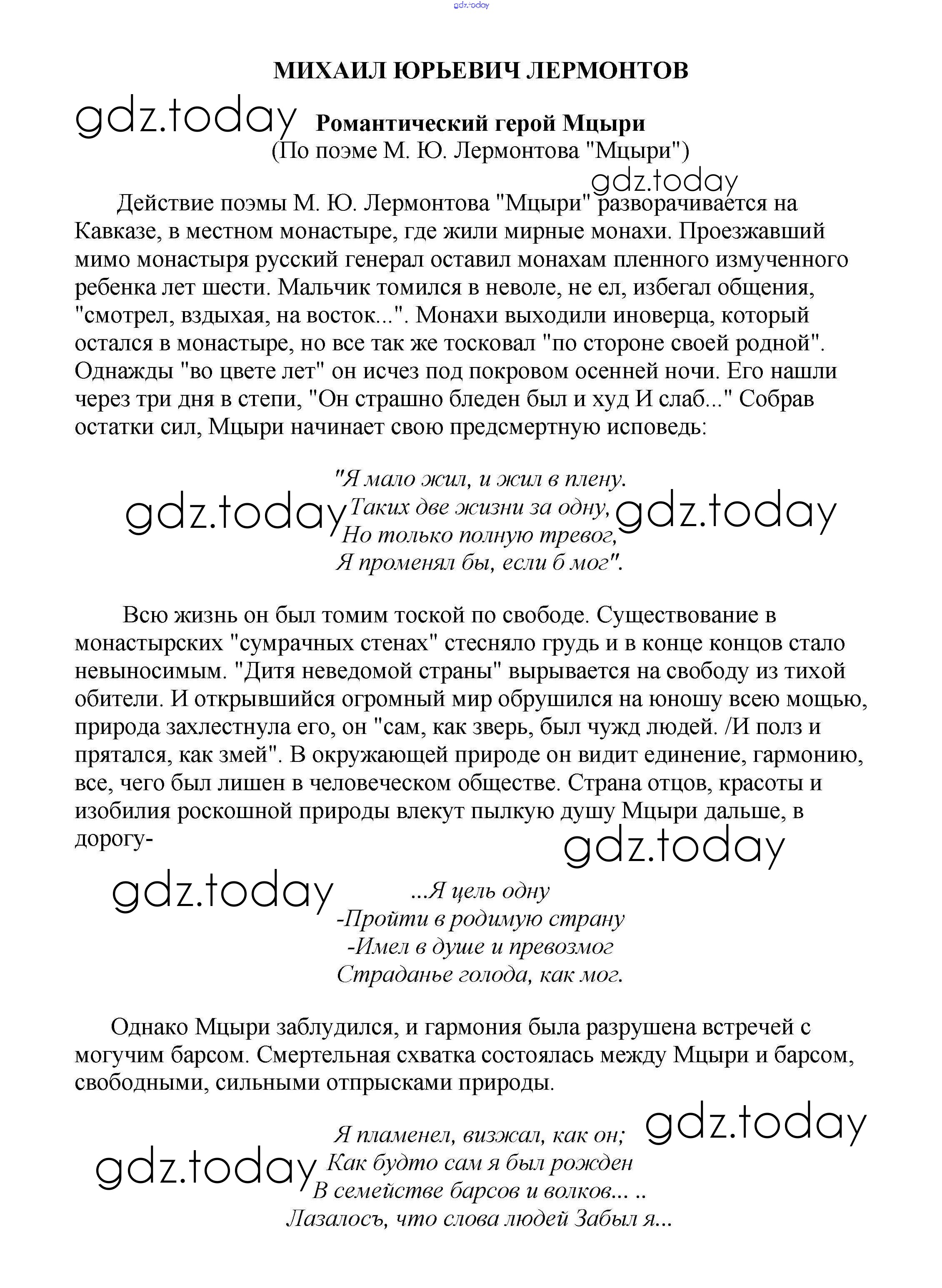 На страницах сайта gdz.today вы найдете учебный и вспомогательный материал, направленный на улучшения знаний школьной программы. ГДЗ - онлайн мир знаний Сочинения по русской литературе 8 класс Романтический герой Мцыри (По поэме М. Ю. Лермонтова "Мцыри") Сочинениям по Литературе для 5-10 класса Белик, Музычук Баро-Пресс 2017