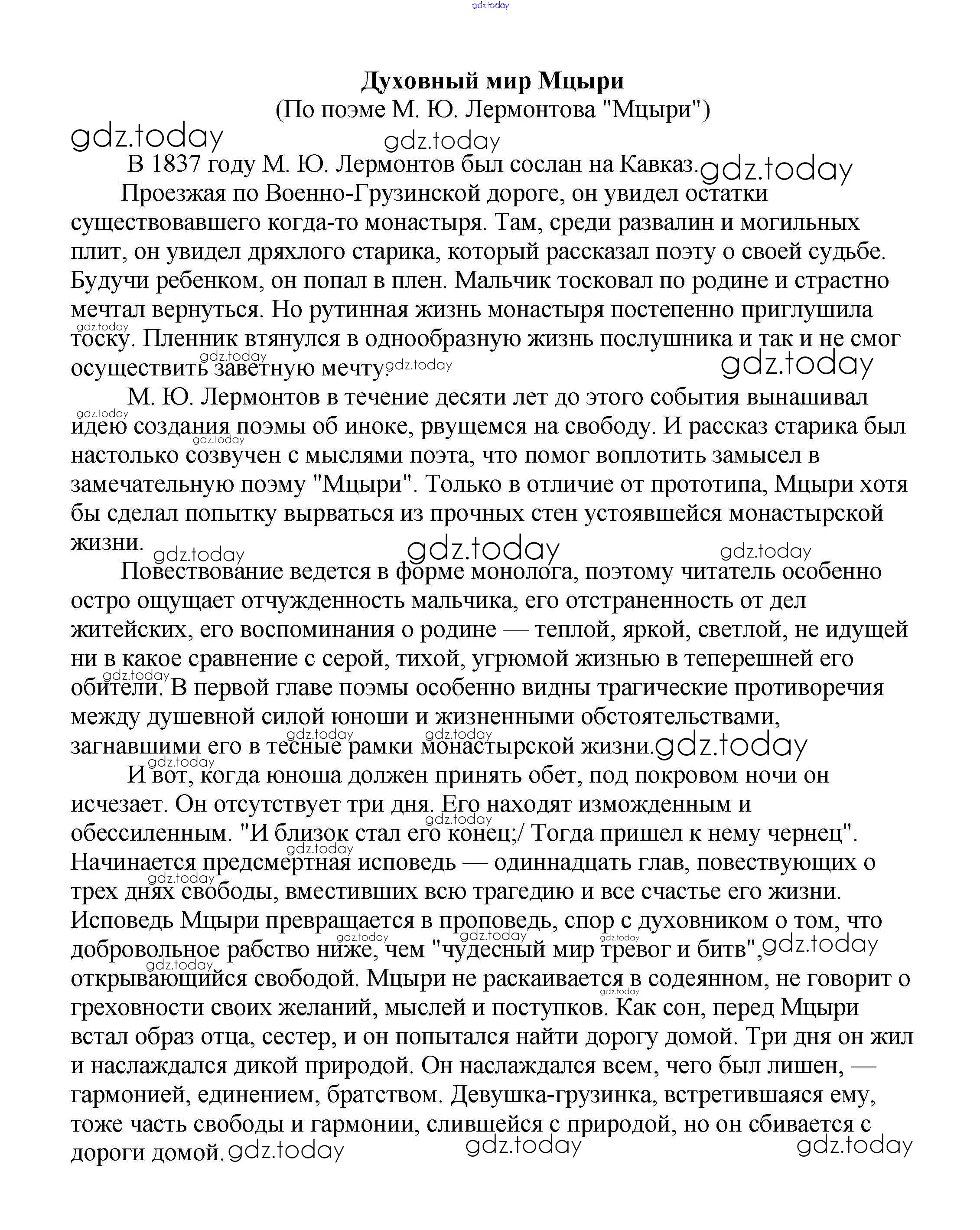 На страницах сайта gdz.today вы найдете учебный и вспомогательный материал, направленный на улучшения знаний школьной программы. ГДЗ - онлайн мир знаний Сочинения по русской литературе 8 класс Духовный мир Мцыри (По поэме М. Ю. Лермонтова "Мцыри") Сочинениям по Литературе для 5-10 класса Белик, Музычук Баро-Пресс 2017