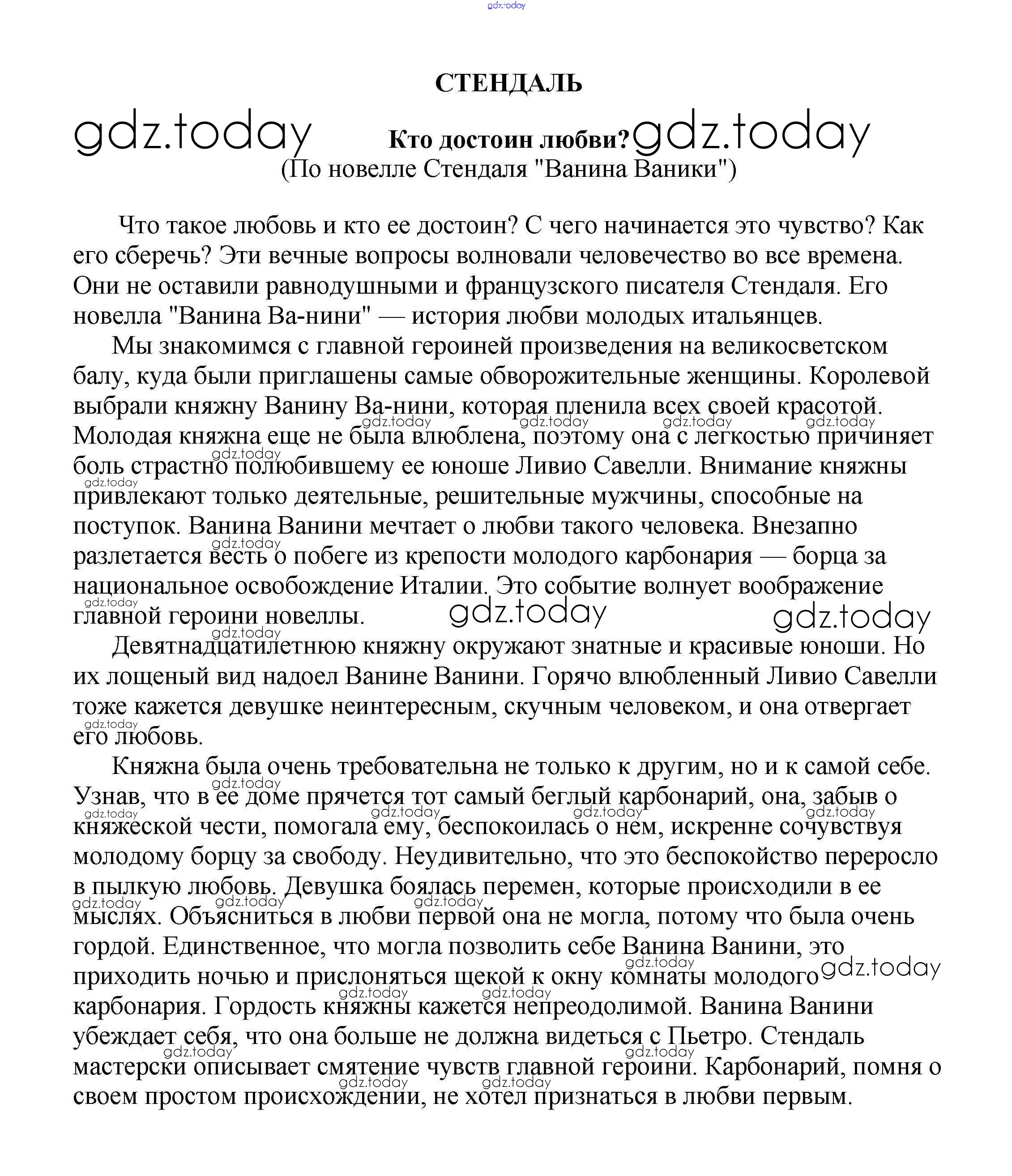 На страницах сайта gdz.today вы найдете учебный и вспомогательный материал, направленный на улучшения знаний школьной программы. ГДЗ - онлайн мир знаний Сочинения по зарубежной литературе 8 класс Кто достоин любви? (По новелле Стендаля "Ванина Ваники") Сочинениям по Литературе для 5-10 класса Белик, Музычук Баро-Пресс 2017