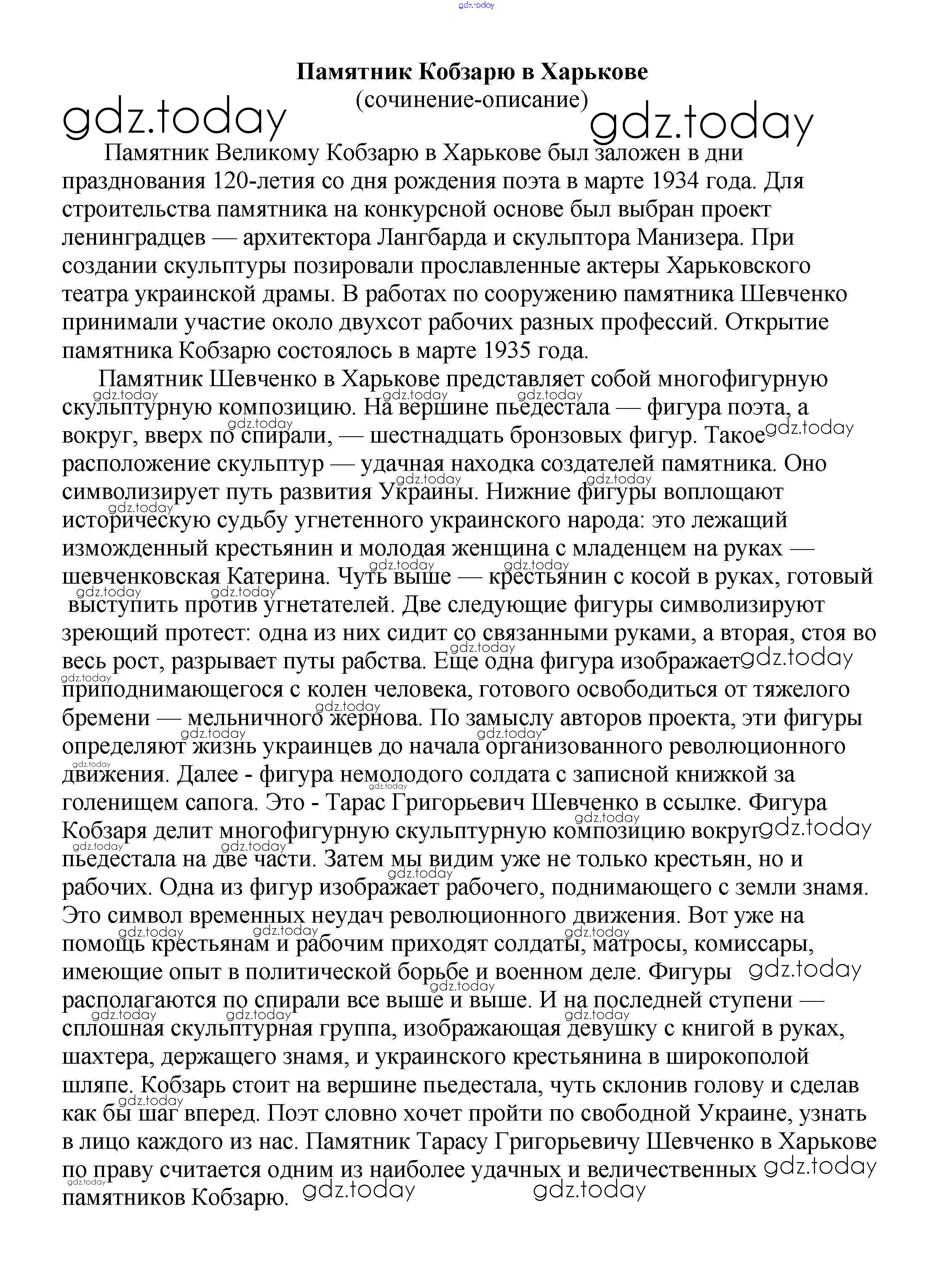 На страницах сайта gdz.today вы найдете учебный и вспомогательный материал, направленный на улучшения знаний школьной программы. ГДЗ - онлайн мир знаний Сочинения на свободную тему 8 класс Памятник Кобзарю в Харькове (сочинение-описание) Сочинениям по Литературе для 5-10 класса Белик, Музычук Баро-Пресс 2017