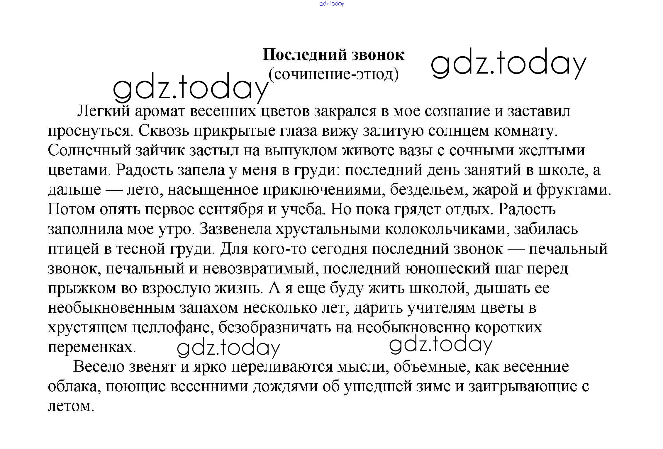 На страницах сайта gdz.today вы найдете учебный и вспомогательный материал, направленный на улучшения знаний школьной программы. ГДЗ - онлайн мир знаний Сочинения на свободную тему 8 класс Последний звонок (сочинение-этюд) Сочинениям по Литературе для 5-10 класса Белик, Музычук Баро-Пресс 2017