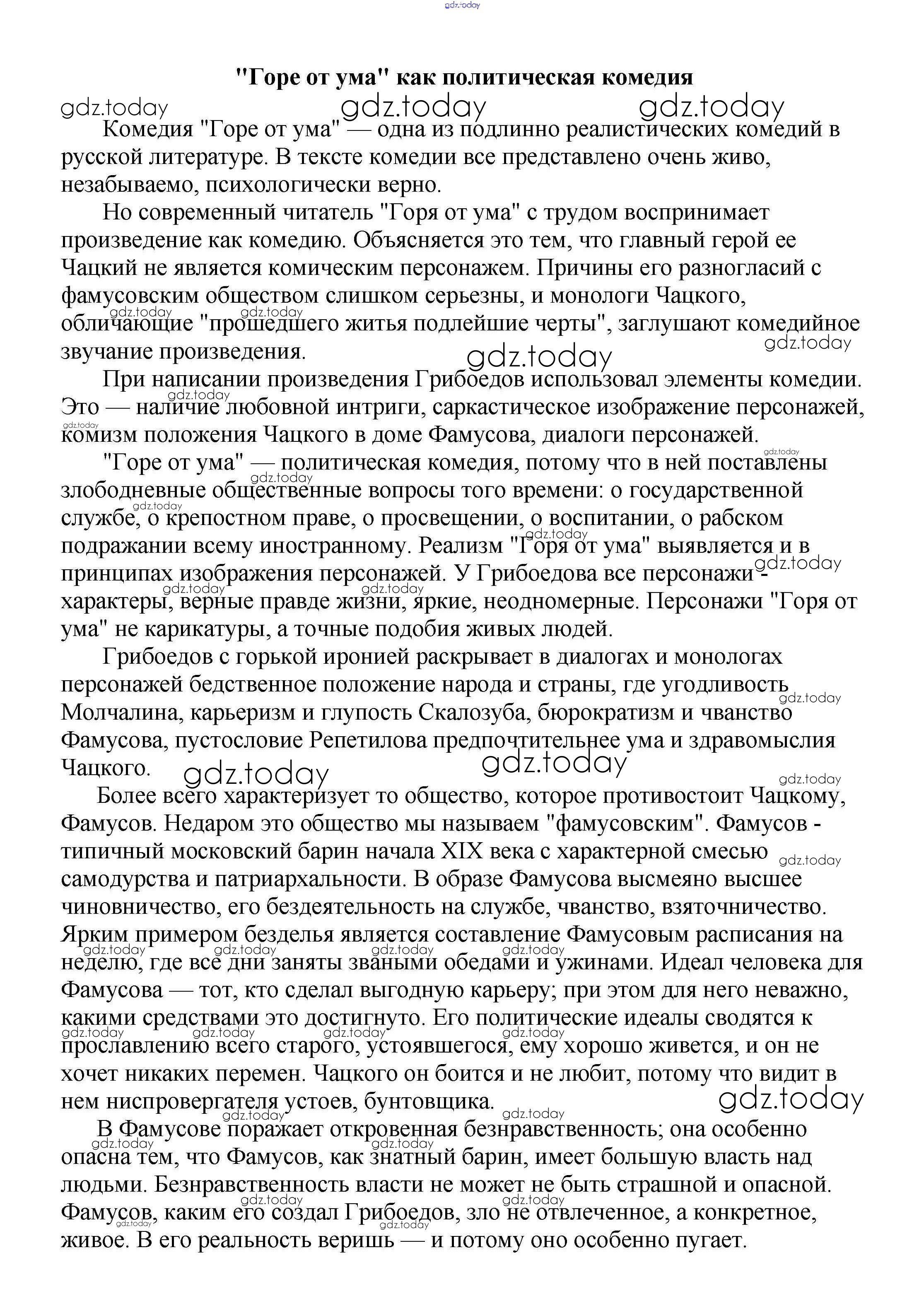 На страницах сайта gdz.today вы найдете учебный и вспомогательный материал, направленный на улучшения знаний школьной программы. ГДЗ - онлайн мир знаний Сочинения по русской литературе 9 класс "Горе от ума" как политическая комедия Сочинениям по Литературе для 5-10 класса Белик, Музычук Баро-Пресс 2017