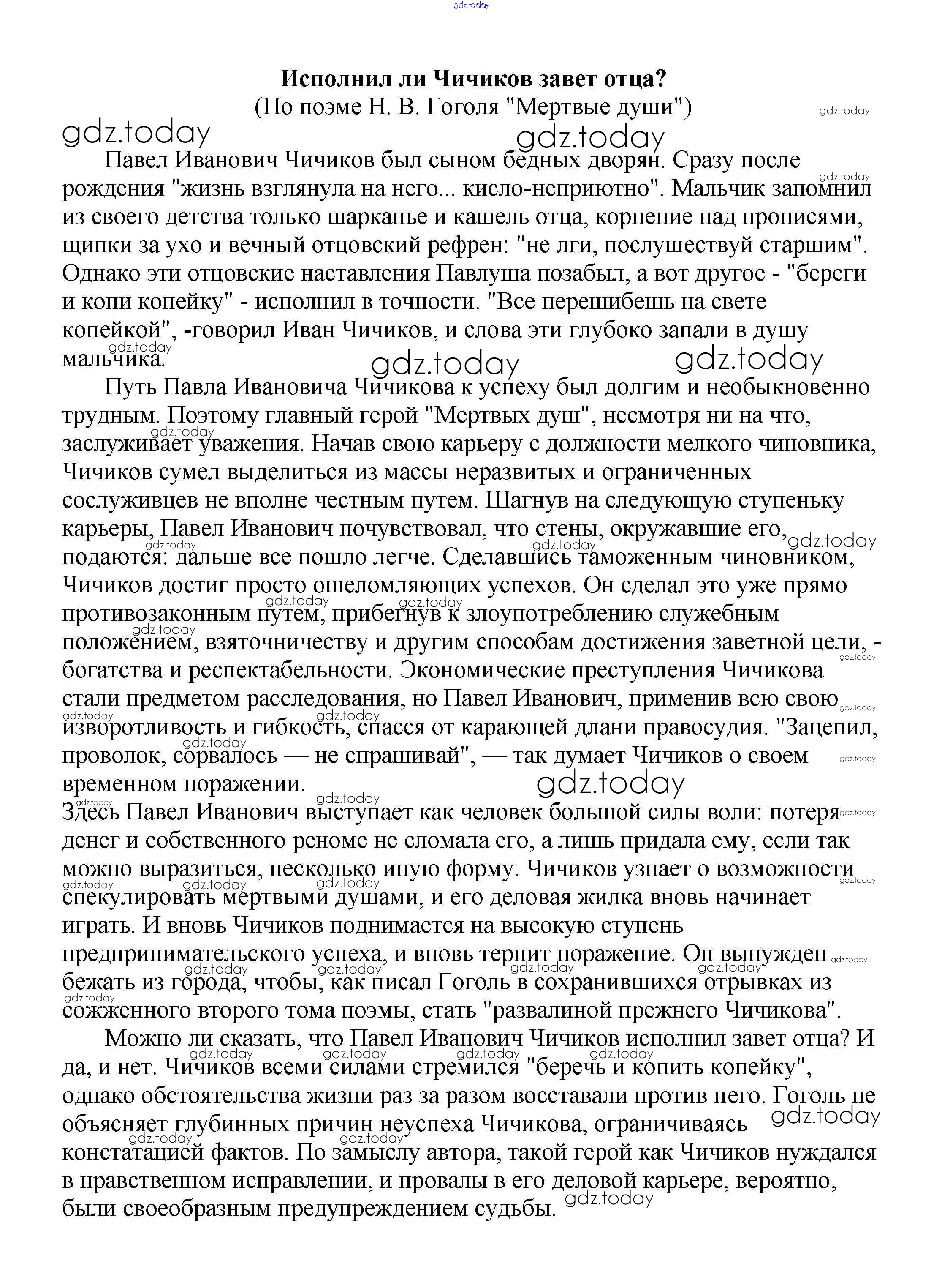 На страницах сайта gdz.today вы найдете учебный и вспомогательный материал, направленный на улучшения знаний школьной программы. ГДЗ - онлайн мир знаний Сочинения по русской литературе 9 класс Исполнил ли Чичиков завет отца? (По поэме Н. В. Гоголя "Мертвые души") Сочинениям по Литературе для 5-10 класса Белик, Музычук Баро-Пресс 2017
