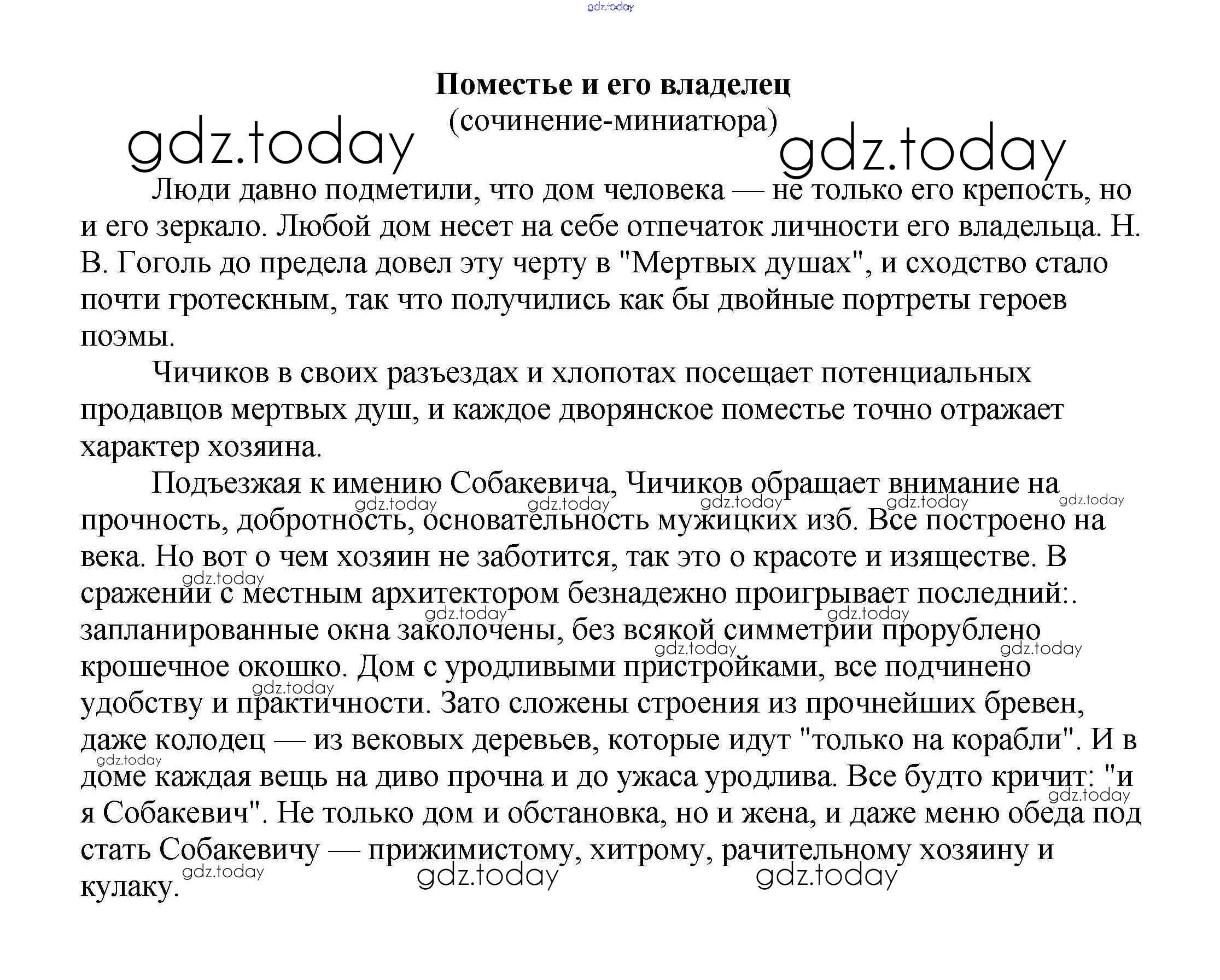 На страницах сайта gdz.today вы найдете учебный и вспомогательный материал, направленный на улучшения знаний школьной программы. ГДЗ - онлайн мир знаний Сочинения по русской литературе 9 класс Поместье и его владелец (сочинение-миниатюра) Сочинениям по Литературе для 5-10 класса Белик, Музычук Баро-Пресс 2017