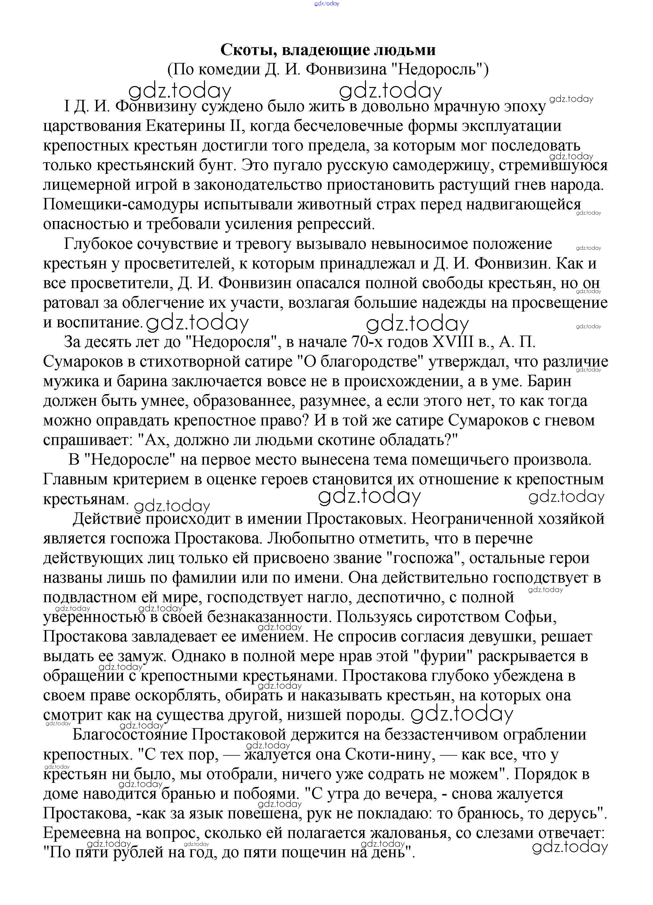 На страницах сайта gdz.today вы найдете учебный и вспомогательный материал, направленный на улучшения знаний школьной программы. ГДЗ - онлайн мир знаний Сочинения по русской литературе 9 класс Скоты, владеющие людьми (По комедии Д. И. Фонвизина "Недоросль") Сочинениям по Литературе для 5-10 класса Белик, Музычук Баро-Пресс 2017