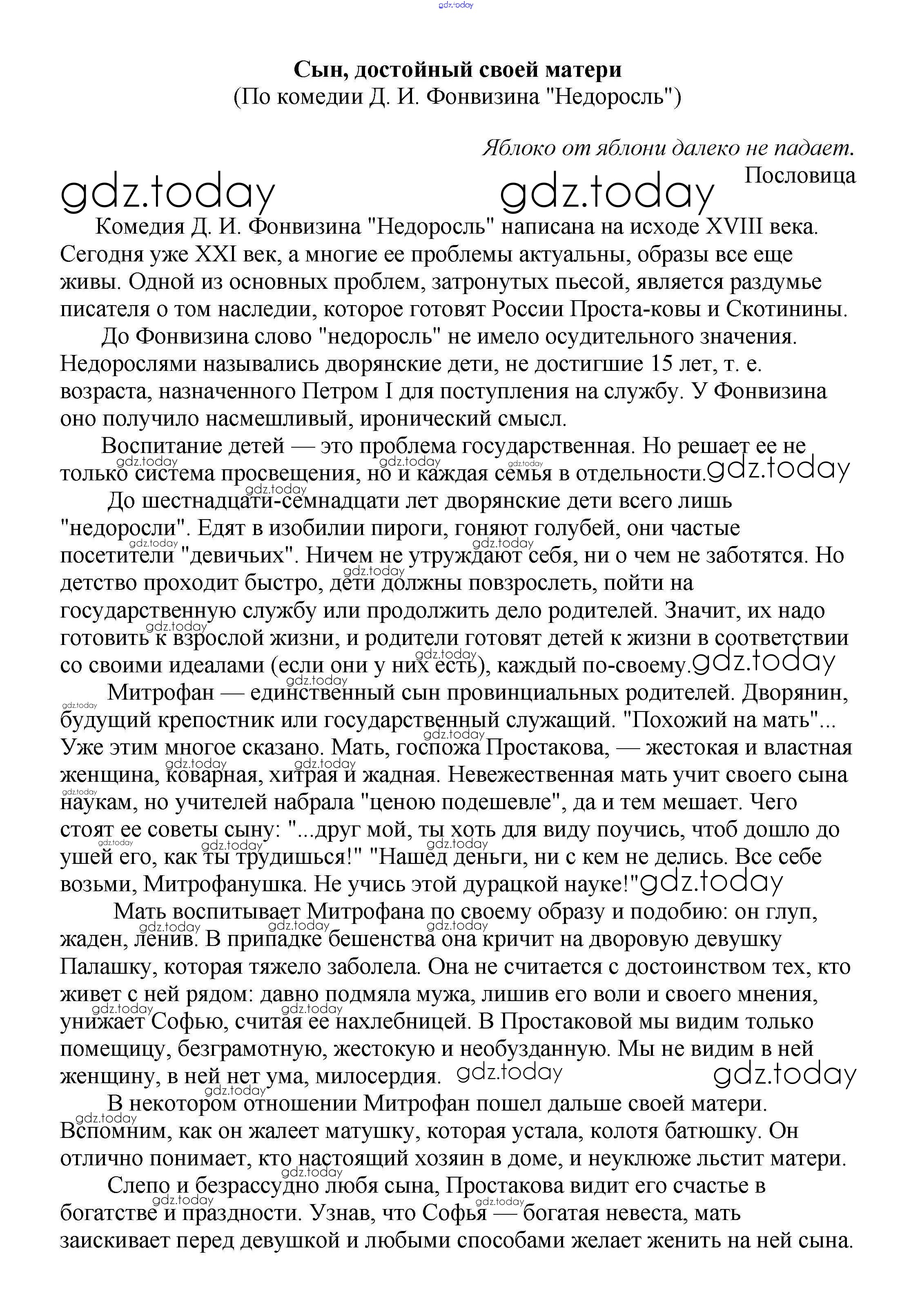 На страницах сайта gdz.today вы найдете учебный и вспомогательный материал, направленный на улучшения знаний школьной программы. ГДЗ - онлайн мир знаний Сочинения по русской литературе 9 класс Сын, достойный своей матери (По комедии Д. И. Фонвизина "Недоросль") Сочинениям по Литературе для 5-10 класса Белик, Музычук Баро-Пресс 2017