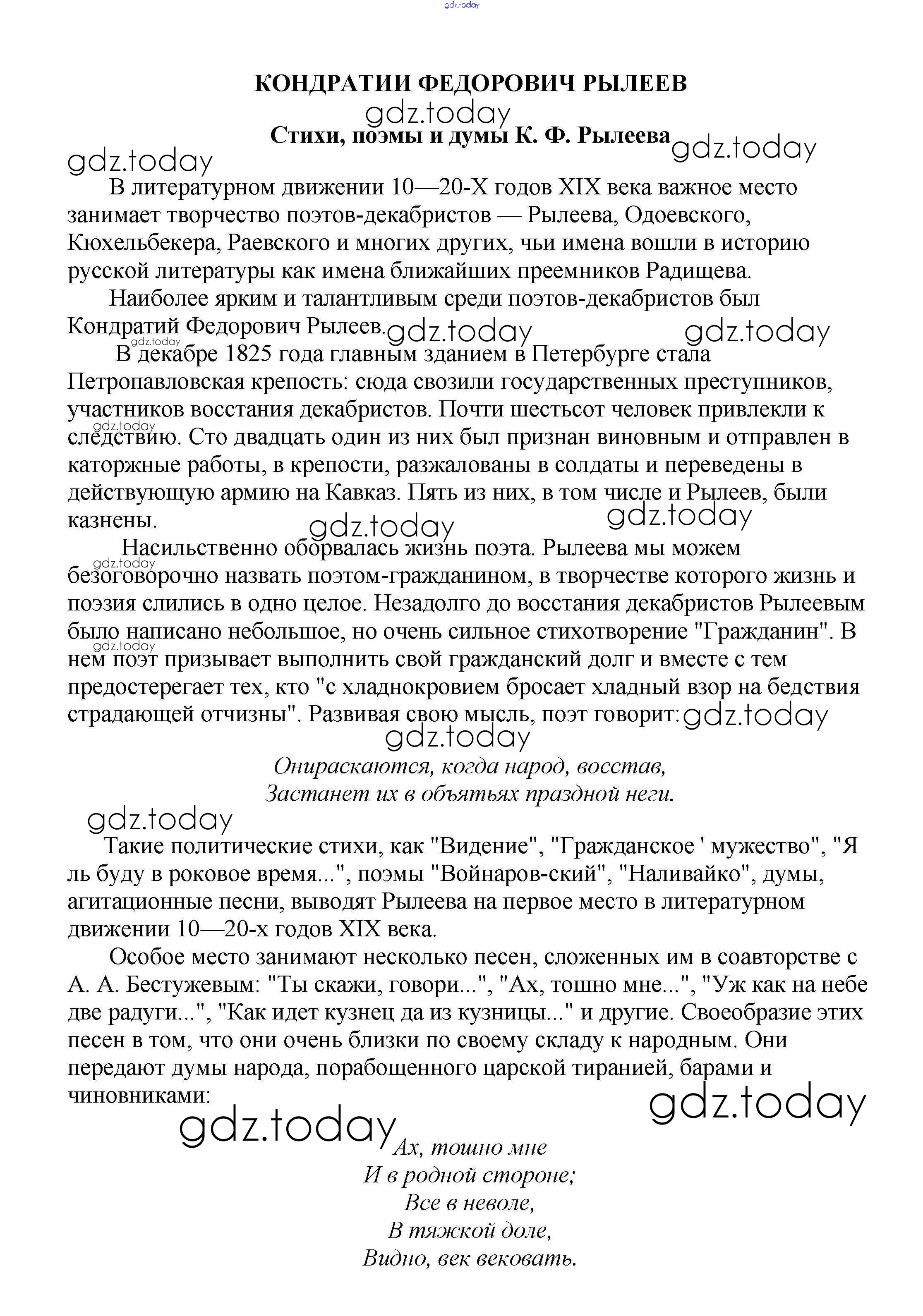 На страницах сайта gdz.today вы найдете учебный и вспомогательный материал, направленный на улучшения знаний школьной программы. ГДЗ - онлайн мир знаний Сочинения по русской литературе 9 класс Стихи, поэмы и думы К. Ф. Рылеева Сочинениям по Литературе для 5-10 класса Белик, Музычук Баро-Пресс 2017