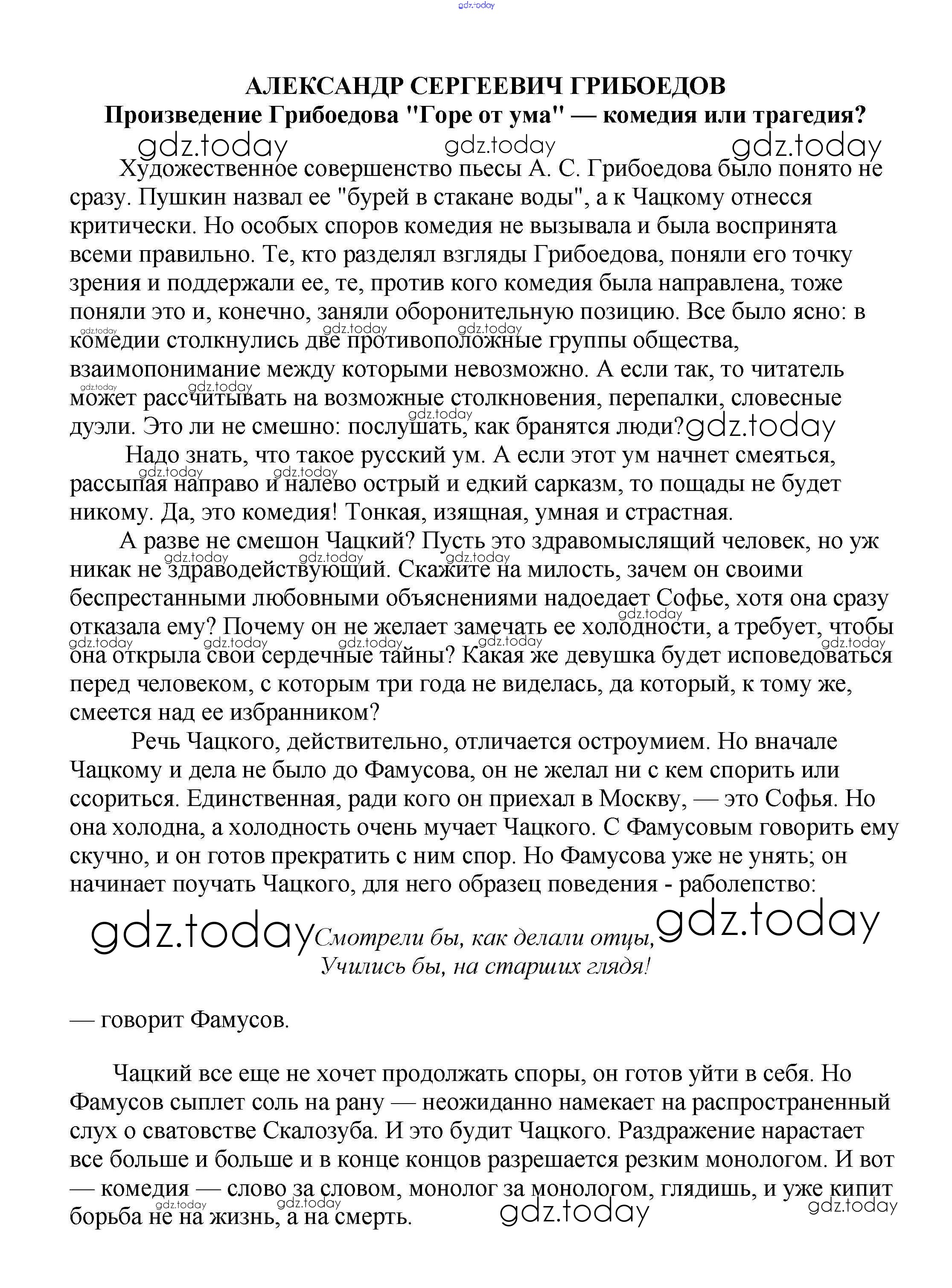 На страницах сайта gdz.today вы найдете учебный и вспомогательный материал, направленный на улучшения знаний школьной программы. ГДЗ - онлайн мир знаний Сочинения по русской литературе 9 класс Произведение Грибоедова "Горе от ума" — комедия или трагедия? Сочинениям по Литературе для 5-10 класса Белик, Музычук Баро-Пресс 2017