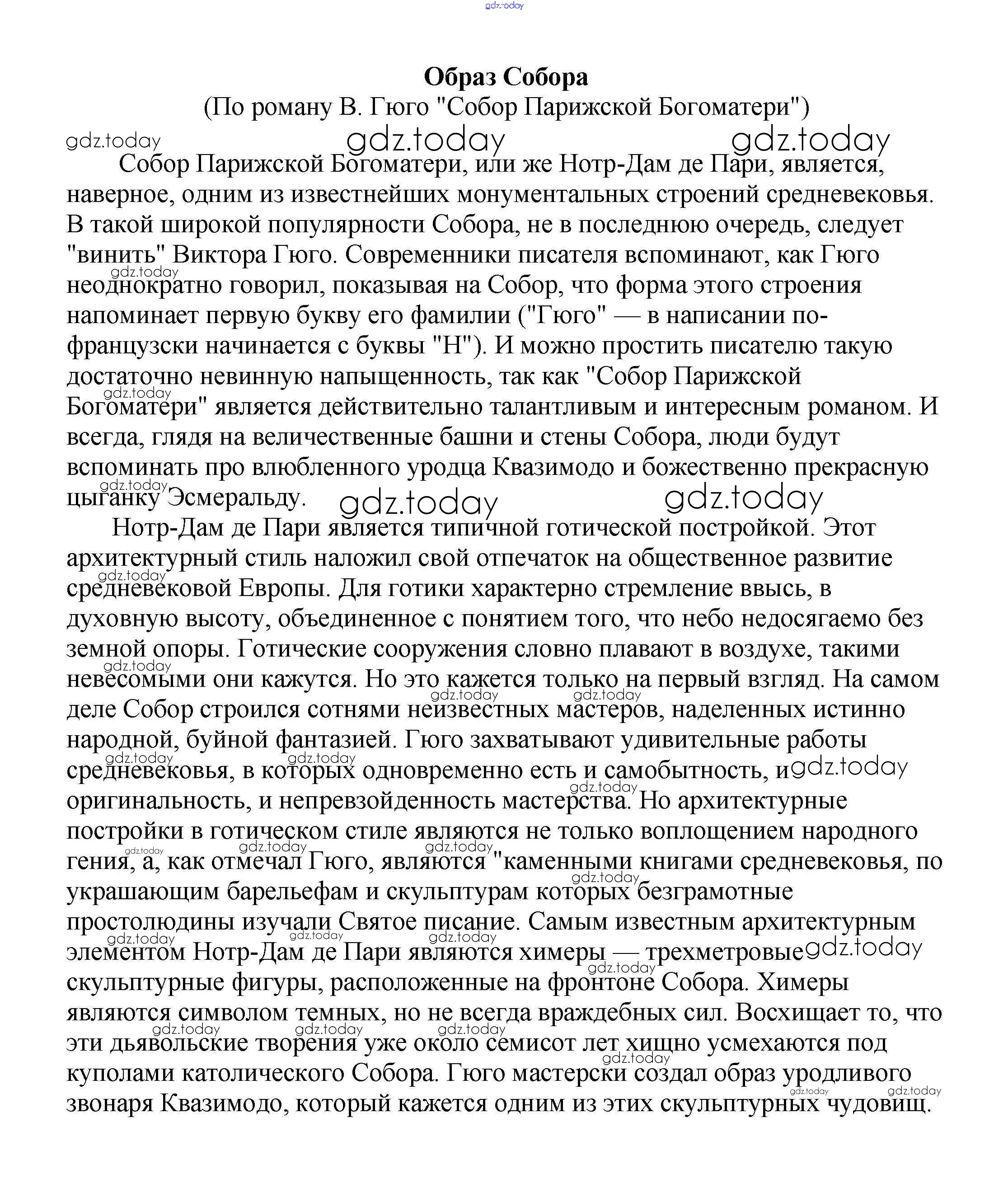 На страницах сайта gdz.today вы найдете учебный и вспомогательный материал, направленный на улучшения знаний школьной программы. ГДЗ - онлайн мир знаний Сочинения по зарубежной литературе 9 класс Образ Собора (По роману В. Гюго "Собор Парижской Богоматери") Сочинениям по Литературе для 5-10 класса Белик, Музычук Баро-Пресс 2017