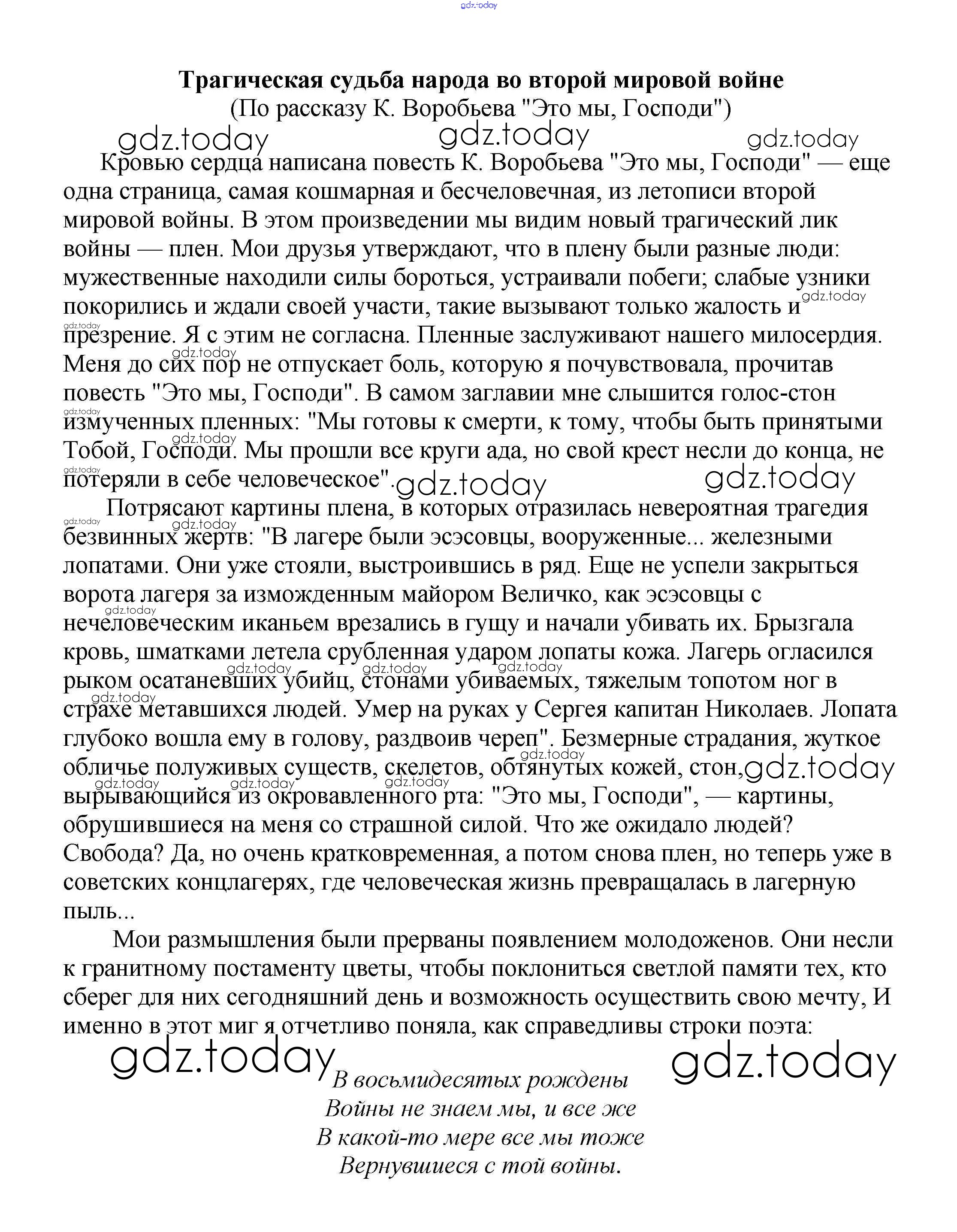 Ответы к Сочинения на свободную тему 9 класс Трагическая судьба народа во второй мировой войне (По рассказу К. Воробьева "Это мы, Господи") Сочинениям по Литературе для 5-10 класса Белик, Музычук Баро-Пресс 2017