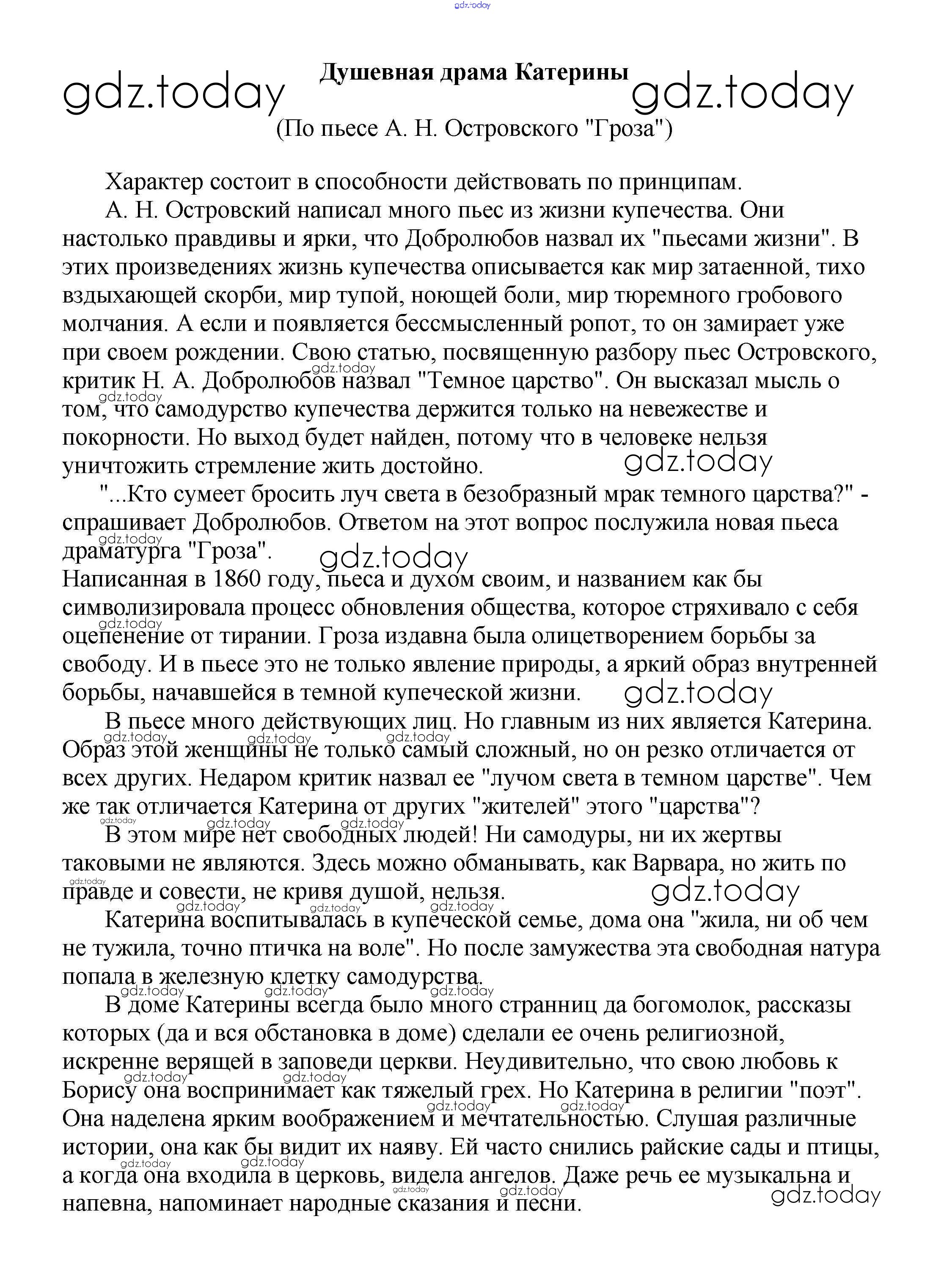 На страницах сайта gdz.today вы найдете учебный и вспомогательный материал, направленный на улучшения знаний школьной программы. ГДЗ - онлайн мир знаний Сочинения по русской литературе 10 класс Душевная драма Катерины (По пьесе А. Н. Островского "Гроза") Сочинениям по Литературе для 5-10 класса Белик, Музычук Баро-Пресс 2017