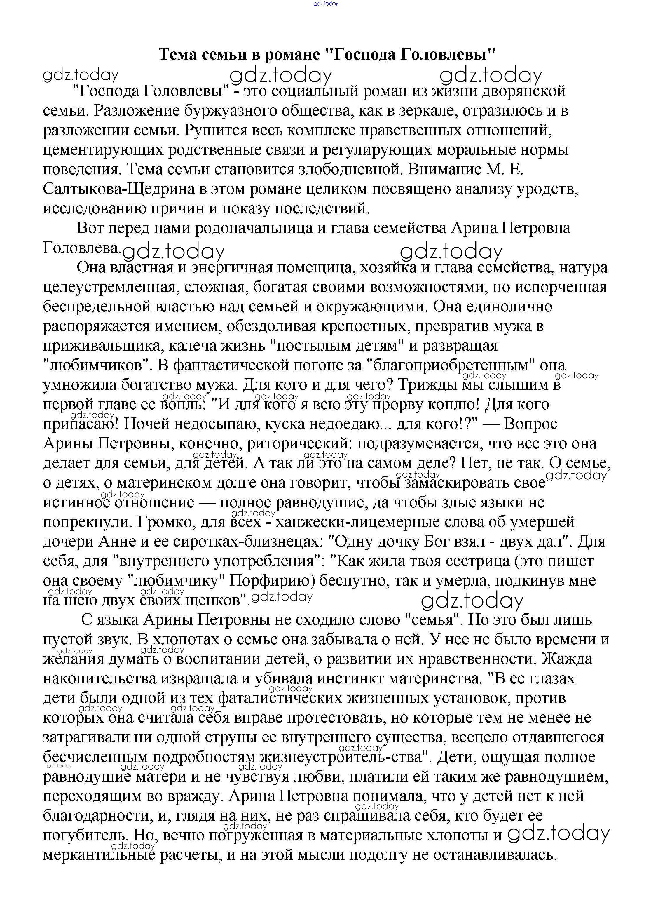 На страницах сайта gdz.today вы найдете учебный и вспомогательный материал, направленный на улучшения знаний школьной программы. ГДЗ - онлайн мир знаний Сочинения по русской литературе 10 класс Тема семьи в романе "Господа Головлевы" Сочинениям по Литературе для 5-10 класса Белик, Музычук Баро-Пресс 2017