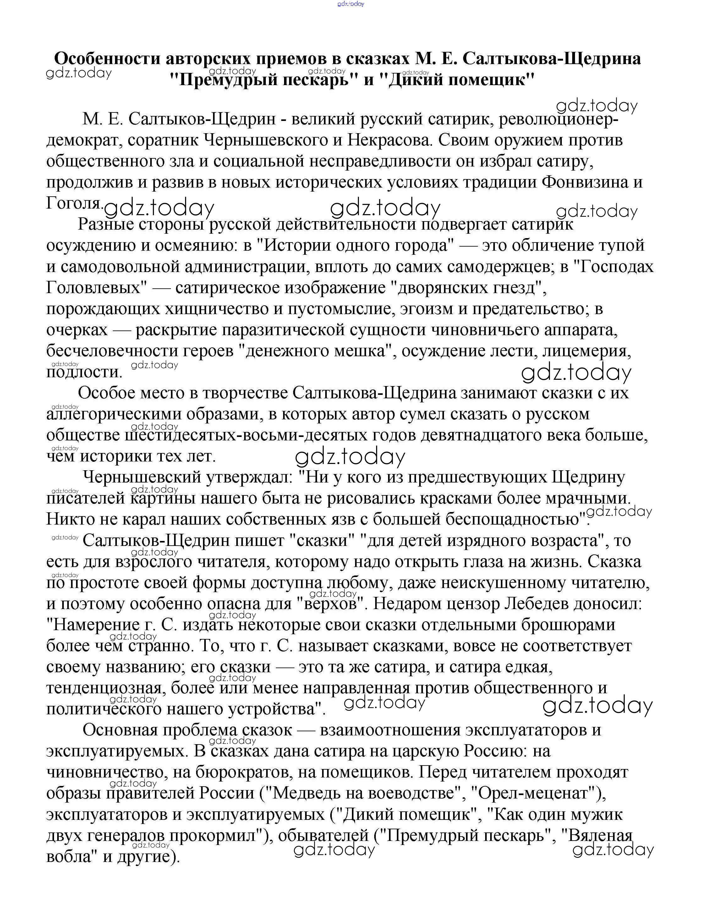 На страницах сайта gdz.today вы найдете учебный и вспомогательный материал, направленный на улучшения знаний школьной программы. ГДЗ - онлайн мир знаний Сочинения по русской литературе 10 класс Особенности авторских приемов в сказках М. Е. Салтыкова-Щедрина "Премудрый пескарь" и "Дикий помещик" Сочинениям по Литературе для 5-10 класса Белик, Музычук Баро-Пресс 2017
