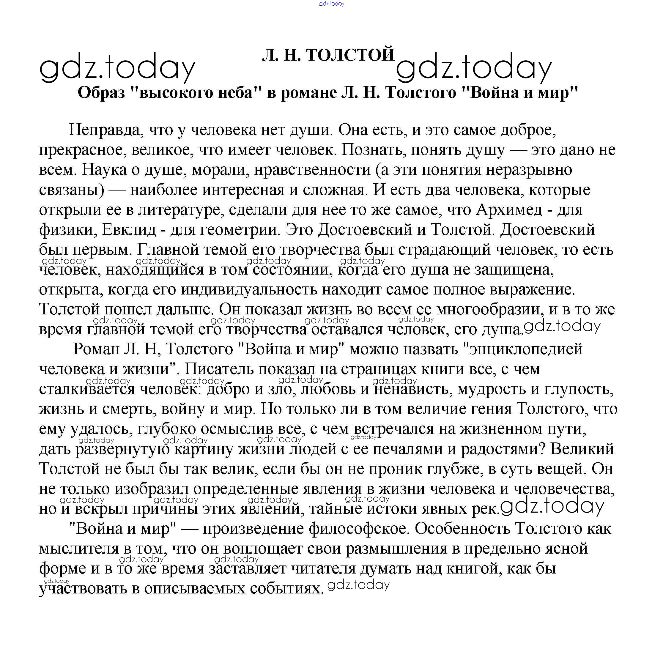 На страницах сайта gdz.today вы найдете учебный и вспомогательный материал, направленный на улучшения знаний школьной программы. ГДЗ - онлайн мир знаний Сочинения по русской литературе 10 класс Образ "высокого неба" в романе Л. Н. Толстого "Война и мир" Сочинениям по Литературе для 5-10 класса Белик, Музычук Баро-Пресс 2017
