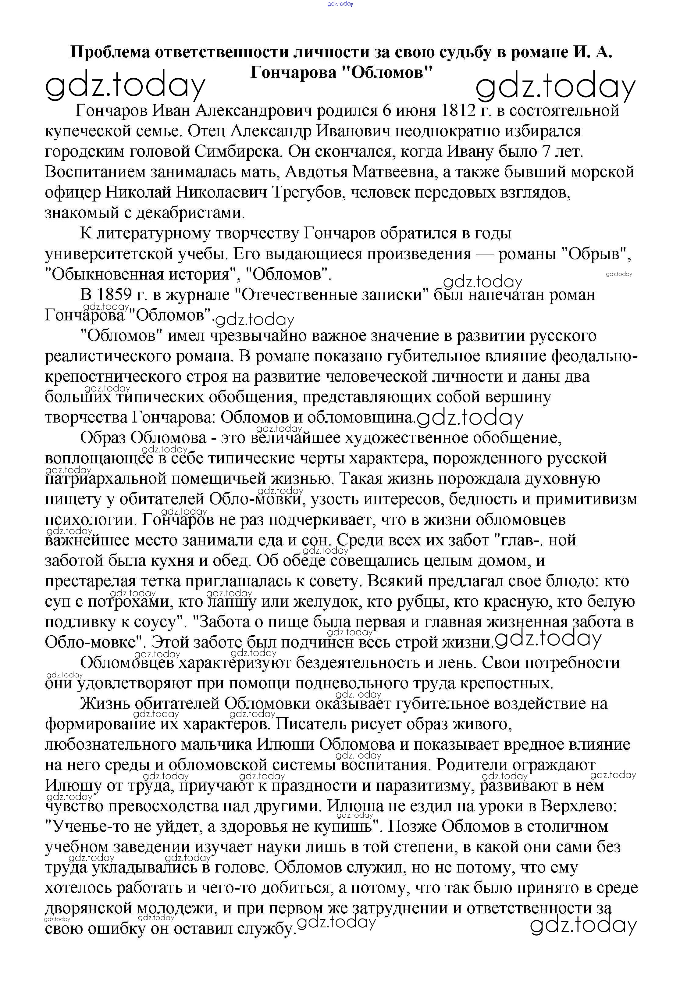 На страницах сайта gdz.today вы найдете учебный и вспомогательный материал, направленный на улучшения знаний школьной программы. ГДЗ - онлайн мир знаний Сочинения по русской литературе 10 класс Проблема ответственности личности за свою судьбу в романе И. А. Гончарова "Обломов" Сочинениям по Литературе для 5-10 класса Белик, Музычук Баро-Пресс 2017
