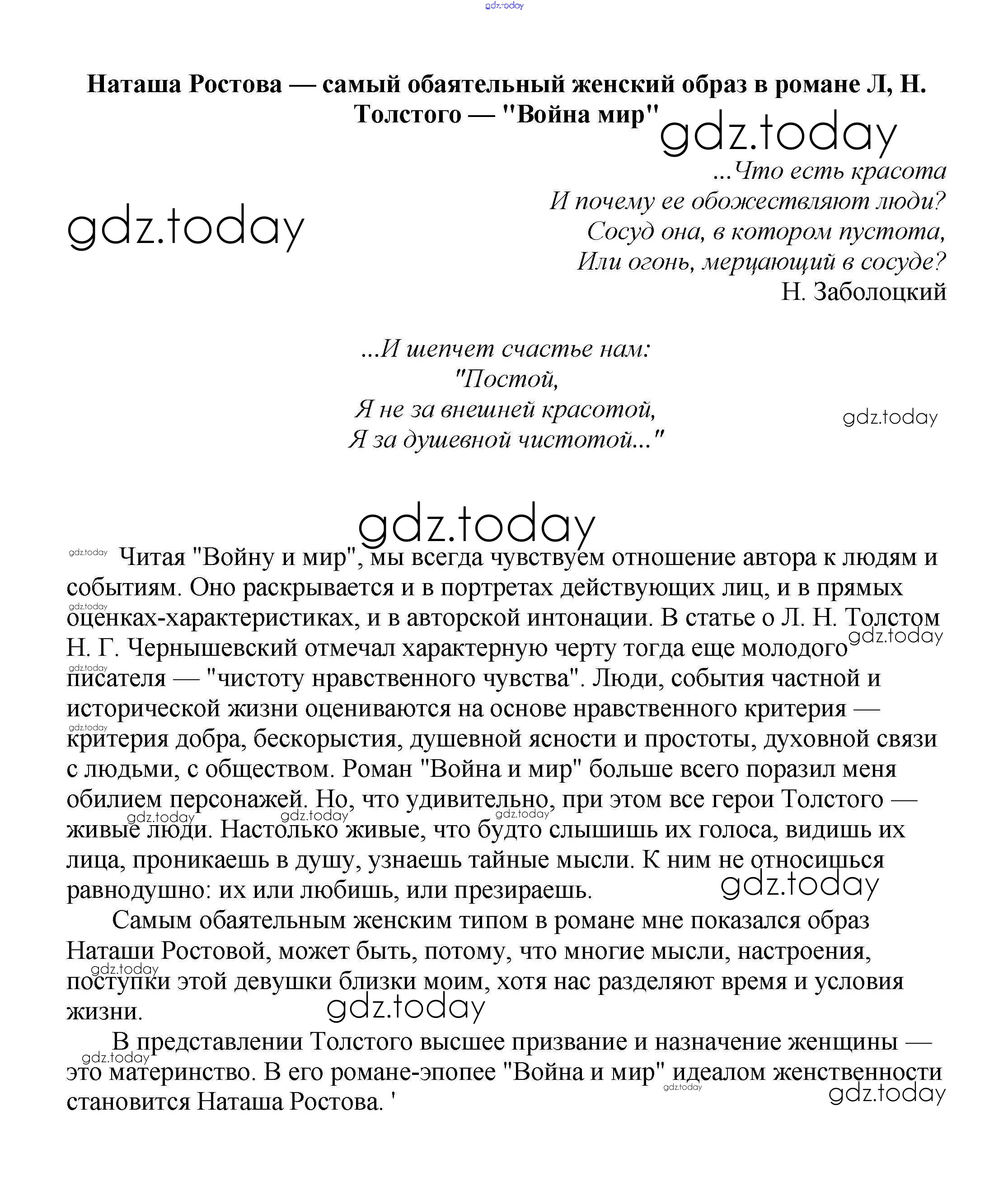 На страницах сайта gdz.today вы найдете учебный и вспомогательный материал, направленный на улучшения знаний школьной программы. ГДЗ - онлайн мир знаний Сочинения по русской литературе 10 класс Наташа Ростова — самый обаятельный женский образ в романе Л, Н. Толстого — "Война мир" Сочинениям по Литературе для 5-10 класса Белик, Музычук Баро-Пресс 2017