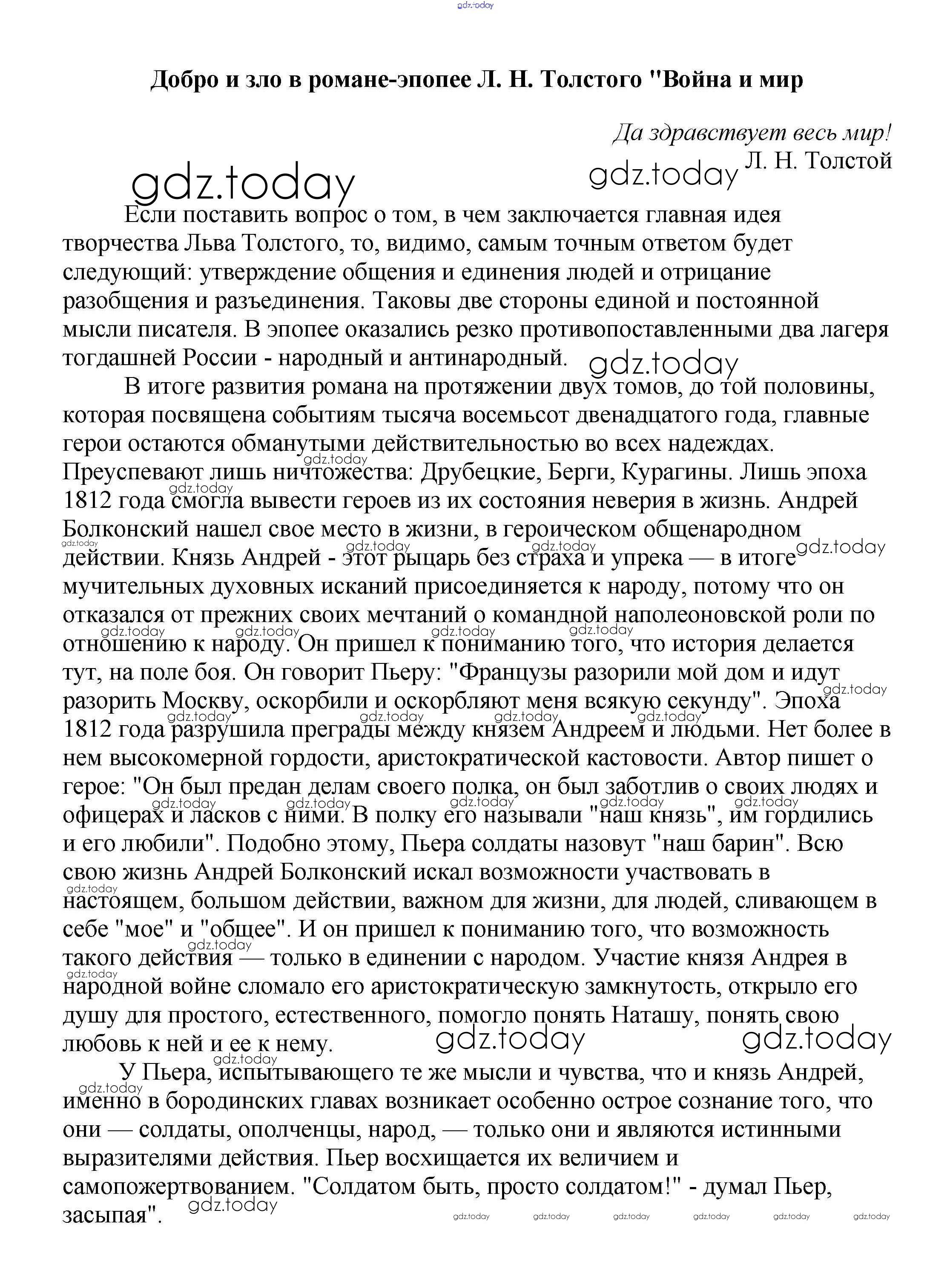 На страницах сайта gdz.today вы найдете учебный и вспомогательный материал, направленный на улучшения знаний школьной программы. ГДЗ - онлайн мир знаний Сочинения по русской литературе 10 класс Добро и зло в романе-эпопее Л. Н. Толстого "Война и мир Сочинениям по Литературе для 5-10 класса Белик, Музычук Баро-Пресс 2017