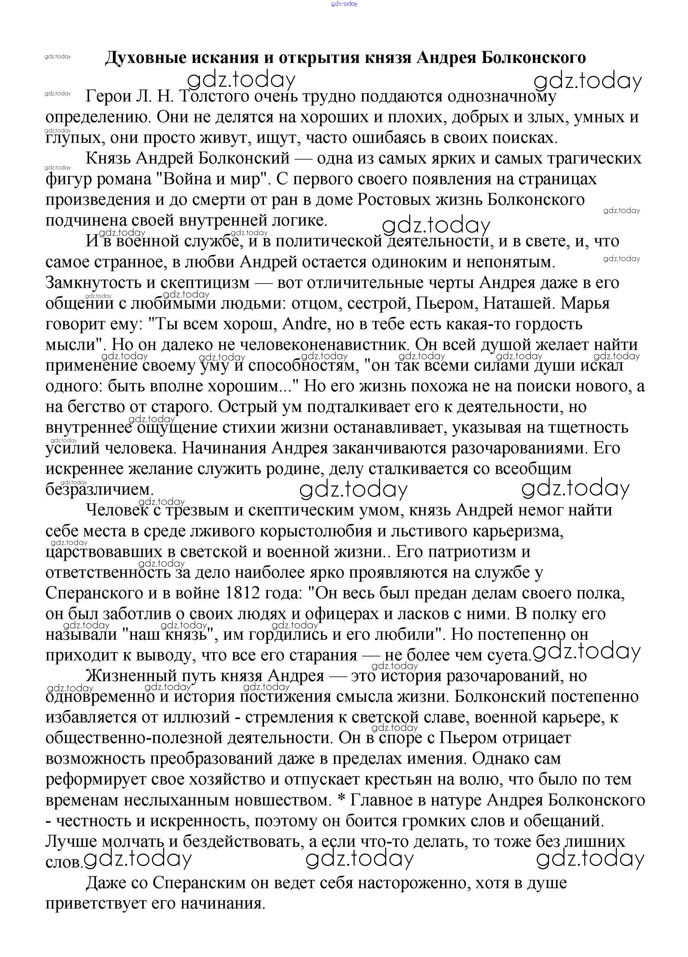 На страницах сайта gdz.today вы найдете учебный и вспомогательный материал, направленный на улучшения знаний школьной программы. ГДЗ - онлайн мир знаний Сочинения по русской литературе 10 класс Духовные искания и открытия князя Андрея Болконского Сочинениям по Литературе для 5-10 класса Белик, Музычук Баро-Пресс 2017
