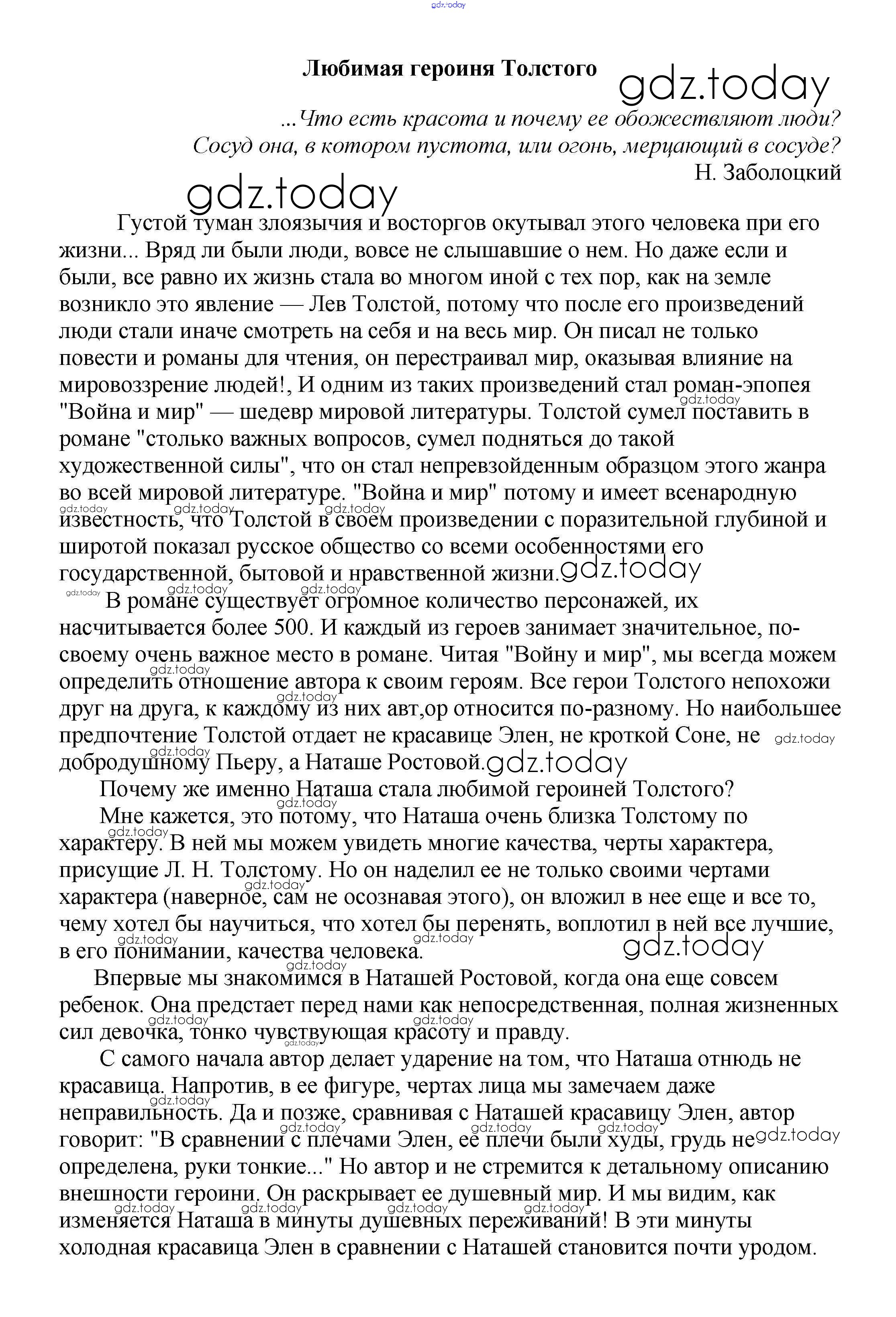 На страницах сайта gdz.today вы найдете учебный и вспомогательный материал, направленный на улучшения знаний школьной программы. ГДЗ - онлайн мир знаний Сочинения по русской литературе 10 класс Любимая героиня Толстого Сочинениям по Литературе для 5-10 класса Белик, Музычук Баро-Пресс 2017