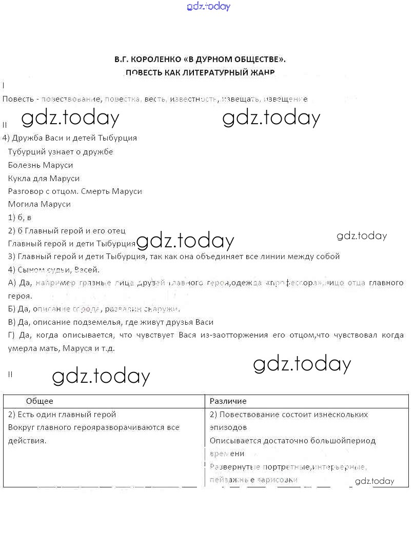 Ответы к Решение к темам В.Г. Короленко. В дурном обществе. Повесть как литературный жанр Рабочей тетради по Литературе для 5 класса Бунеев, Чиндилова Баласс Школа 2100 2014