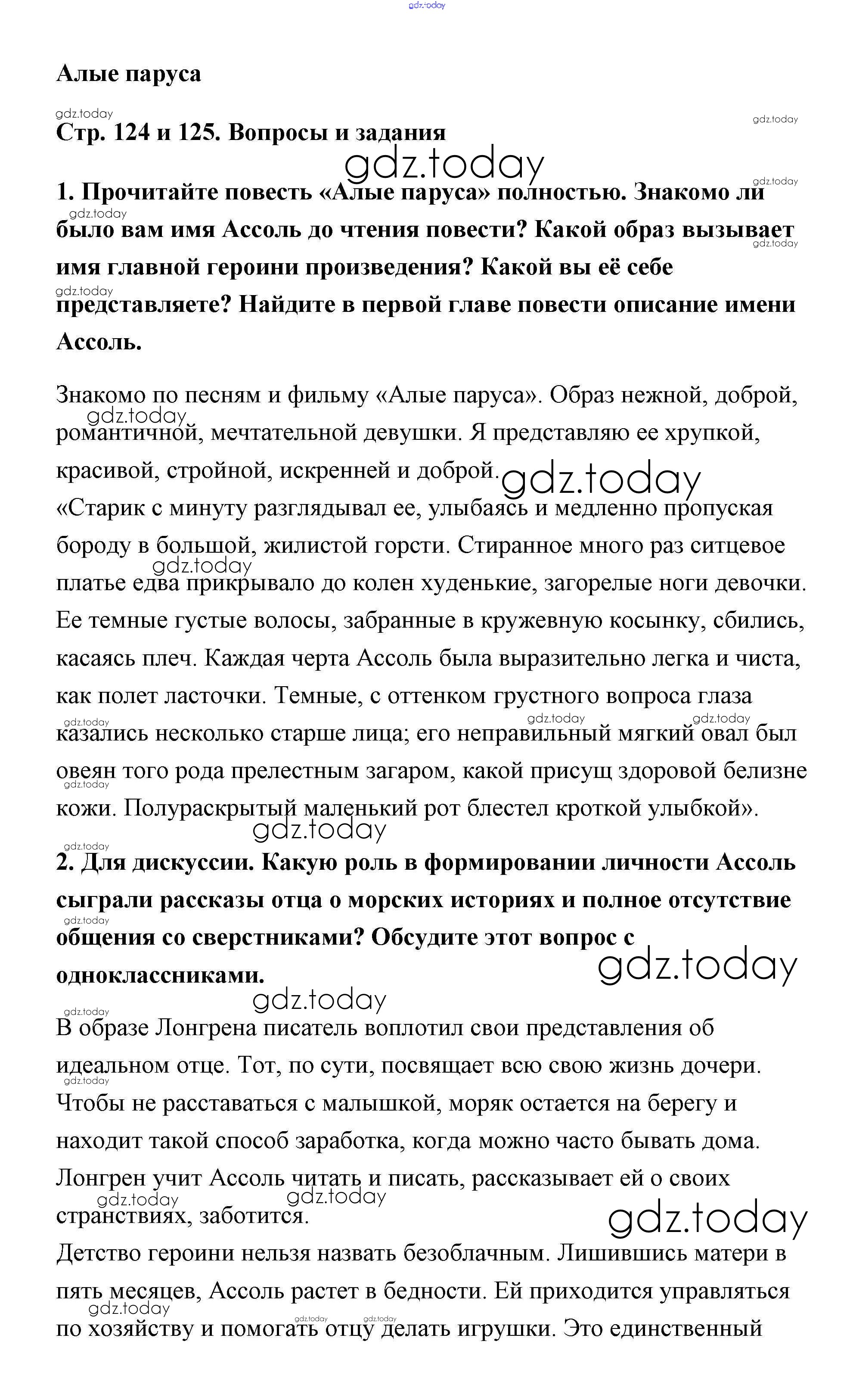 На страницах сайта gdz.today вы найдете учебный и вспомогательный материал, направленный на улучшения знаний школьной программы. ГДЗ - онлайн мир знаний А.С. Грин Решение к части 2 (Темы) страница 124-125 Учебнику по Литературе для 5 класса Чертов, Трубина Просвещение 2018