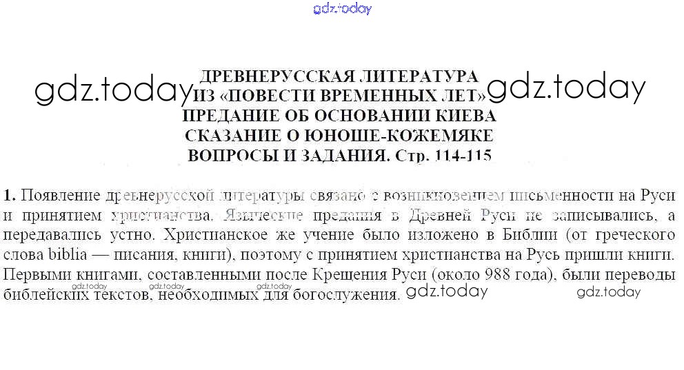 На страницах сайта gdz.today вы найдете учебный и вспомогательный материал, направленный на улучшения знаний школьной программы. ГДЗ - онлайн мир знаний Предание об основании Киева Решение к части 1 (Темы) 114 Учебнику по Литературе для 5 класса Чертов, Трубина Просвещение 2018
