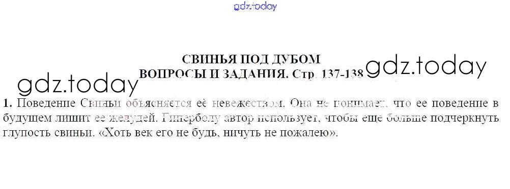На страницах сайта gdz.today вы найдете учебный и вспомогательный материал, направленный на улучшения знаний школьной программы. ГДЗ - онлайн мир знаний Свинья под дубом Решение к части 1 (Темы) 137 Учебнику по Литературе для 5 класса Чертов, Трубина Просвещение 2018