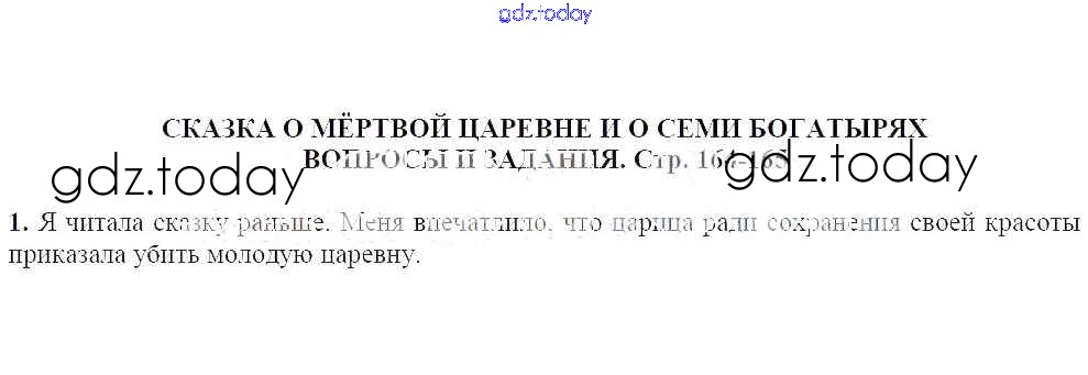 На страницах сайта gdz.today вы найдете учебный и вспомогательный материал, направленный на улучшения знаний школьной программы. ГДЗ - онлайн мир знаний Сказка о мертвой царевне и о семи богатырях Решение к части 1 (Темы) 164 Учебнику по Литературе для 5 класса Чертов, Трубина Просвещение 2018