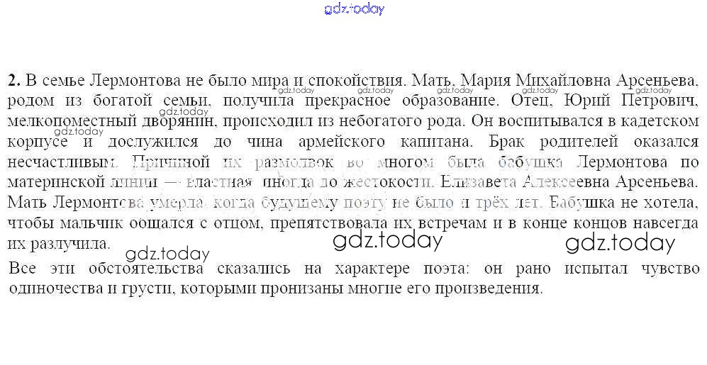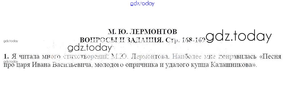На страницах сайта gdz.today вы найдете учебный и вспомогательный материал, направленный на улучшения знаний школьной программы. ГДЗ - онлайн мир знаний Лермонтов Решение к части 1 (Темы) 168 Учебнику по Литературе для 5 класса Чертов, Трубина Просвещение 2018