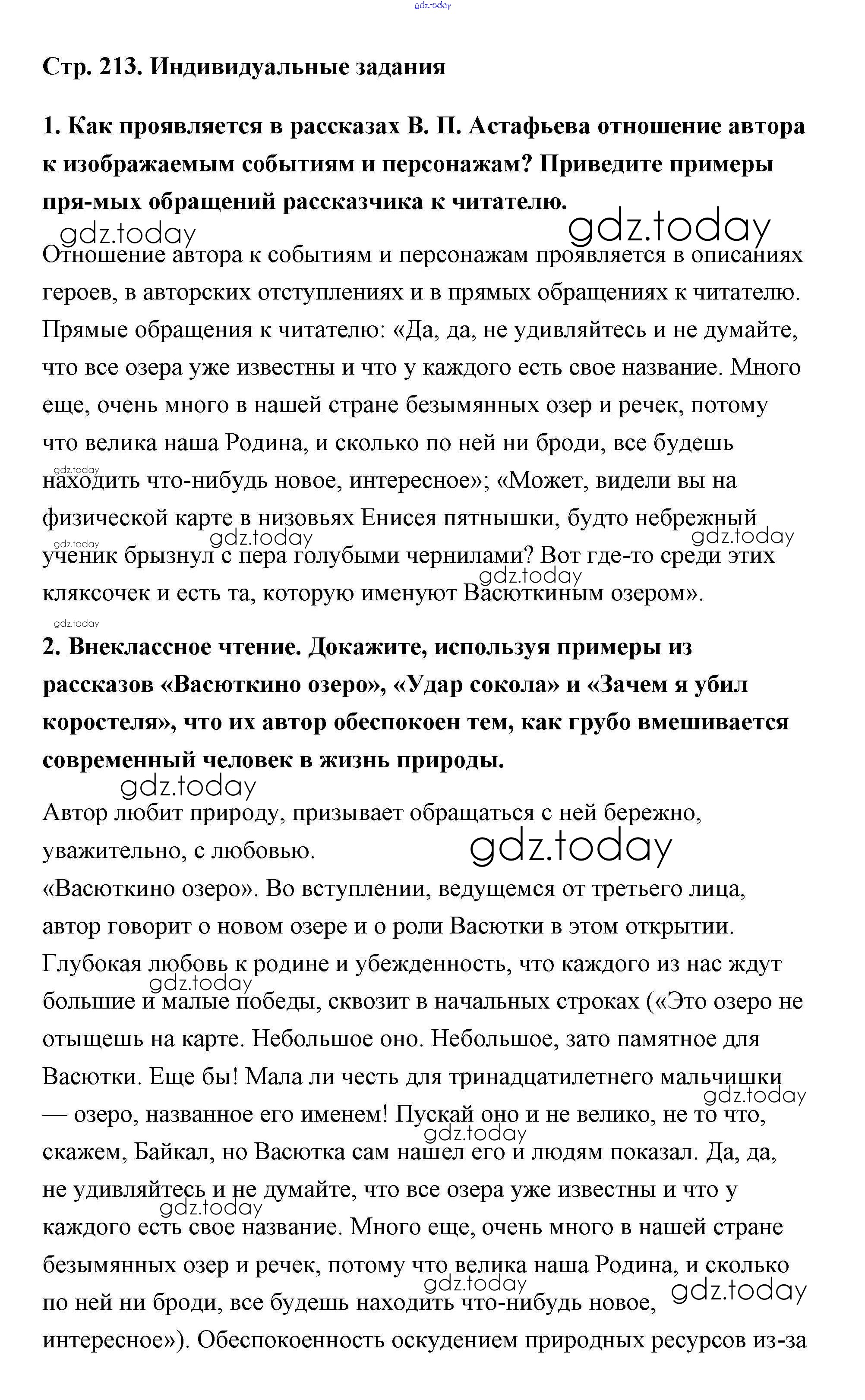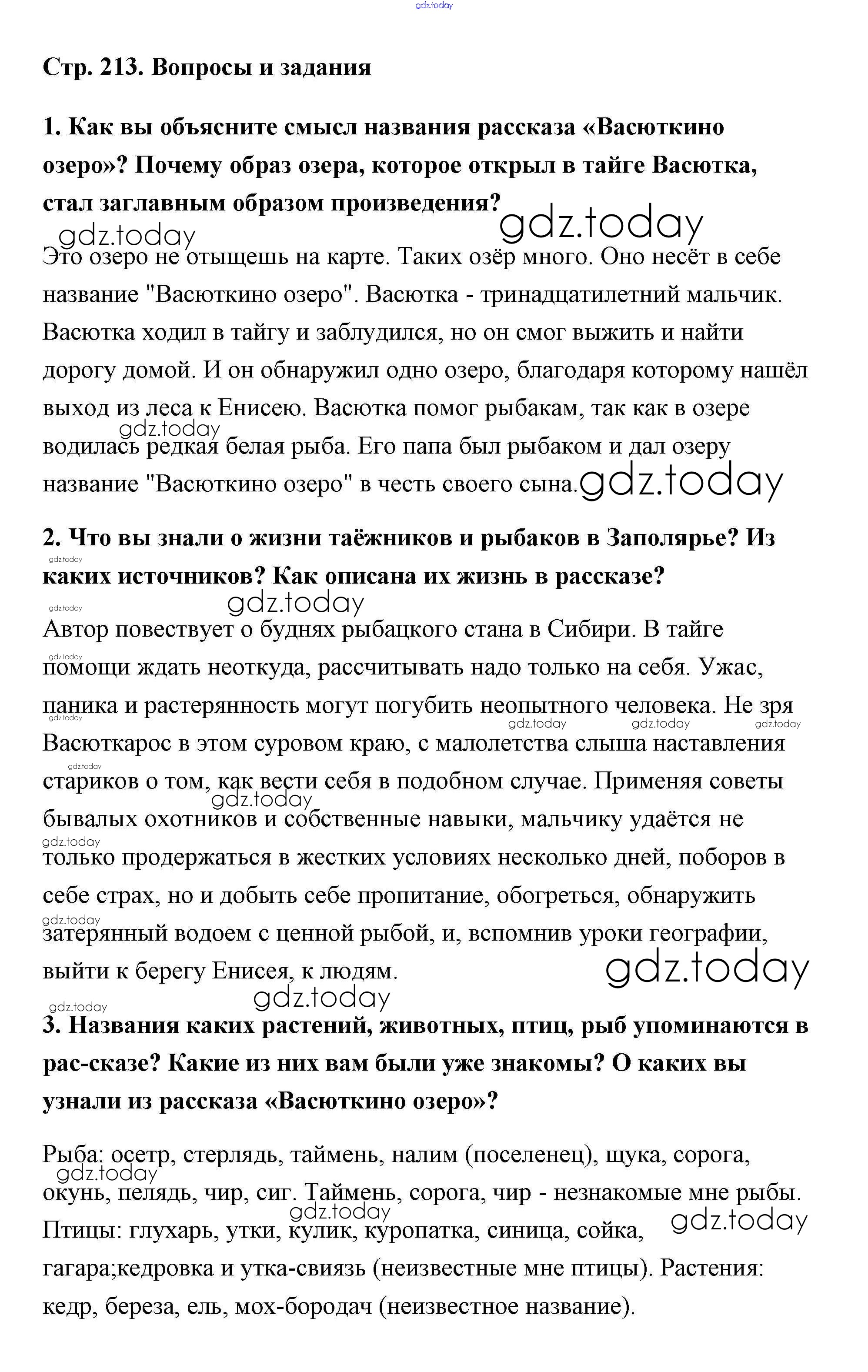 На страницах сайта gdz.today вы найдете учебный и вспомогательный материал, направленный на улучшения знаний школьной программы. ГДЗ - онлайн мир знаний В.П. Астафьев Решение к части 2 (Темы) страница 213 Учебнику по Литературе для 5 класса Чертов, Трубина Просвещение 2018