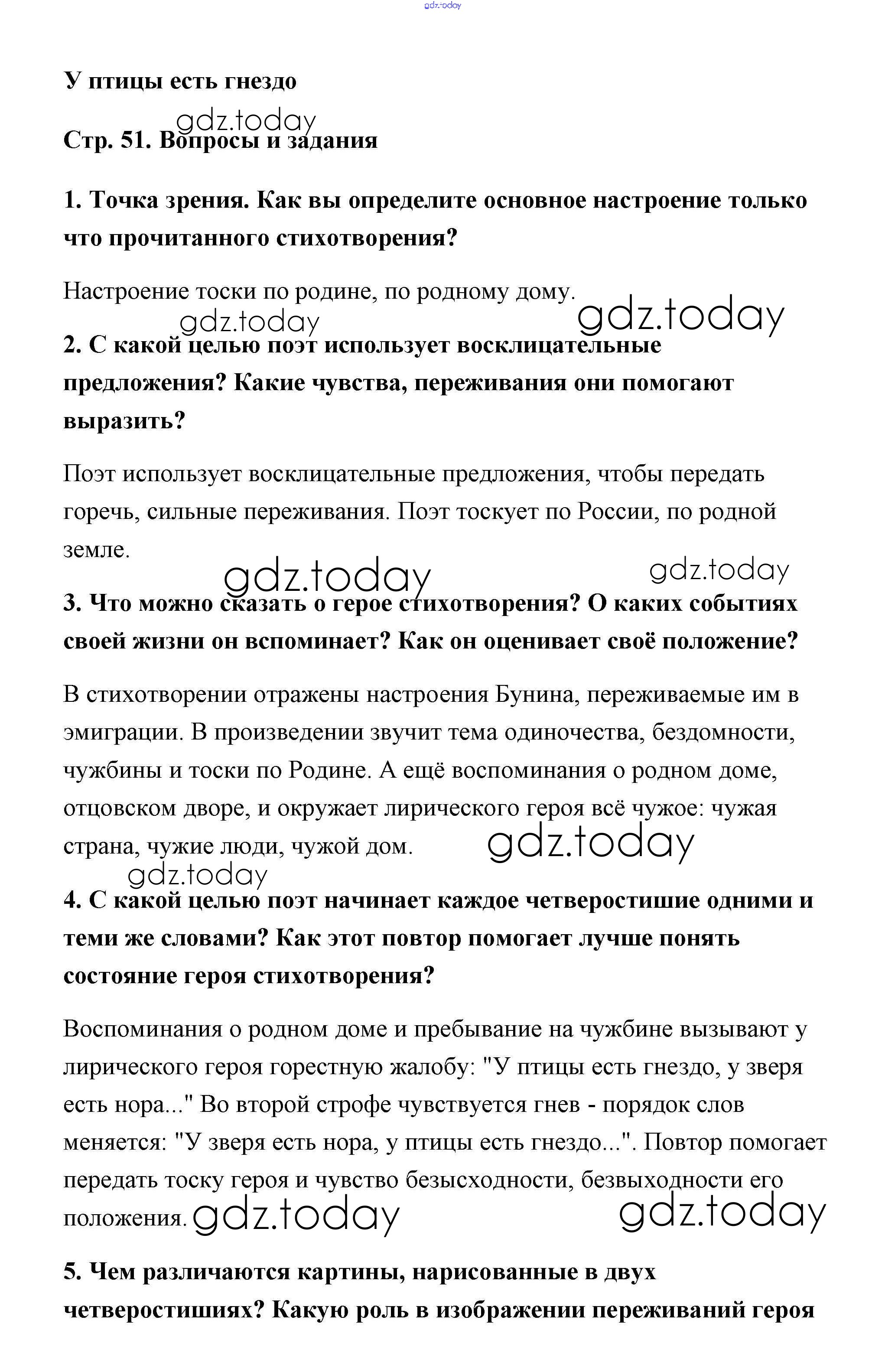 На страницах сайта gdz.today вы найдете учебный и вспомогательный материал, направленный на улучшения знаний школьной программы. ГДЗ - онлайн мир знаний И.А. Бунин Решение к части 2 (Темы) страница 51 Учебнику по Литературе для 5 класса Чертов, Трубина Просвещение 2018