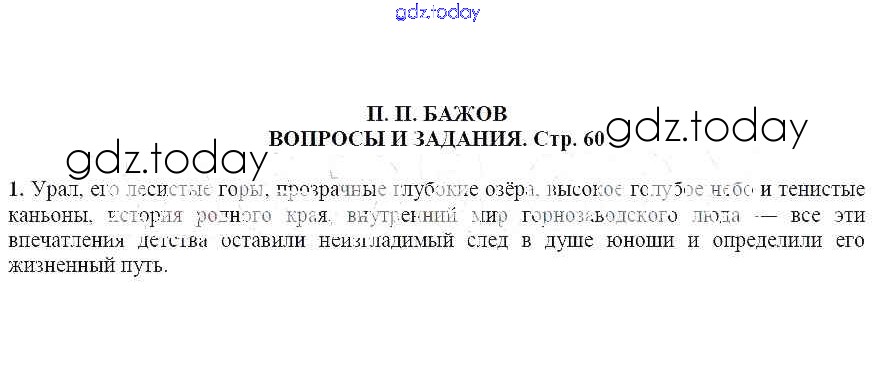 На страницах сайта gdz.today вы найдете учебный и вспомогательный материал, направленный на улучшения знаний школьной программы. ГДЗ - онлайн мир знаний П.П. Бажов Решение к части 2 (Темы) страница 60 Учебнику по Литературе для 5 класса Чертов, Трубина Просвещение 2018