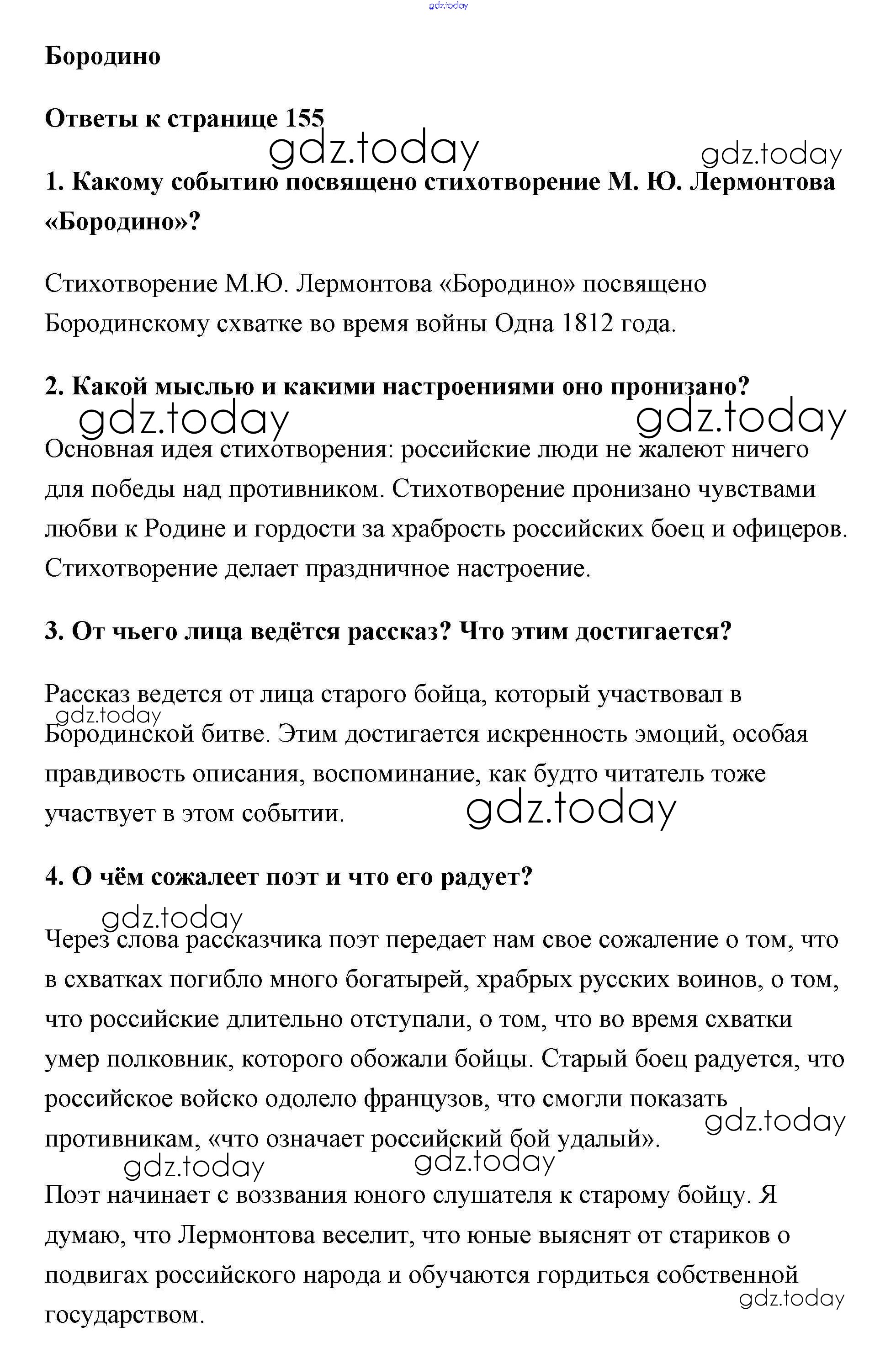 На страницах сайта gdz.today вы найдете учебный и вспомогательный материал, направленный на улучшения знаний школьной программы. ГДЗ - онлайн мир знаний Решение к части 1 (Страницы) 155 Учебнику по Литературе для 5 класса Коровина, Коровин Просвещение 2016