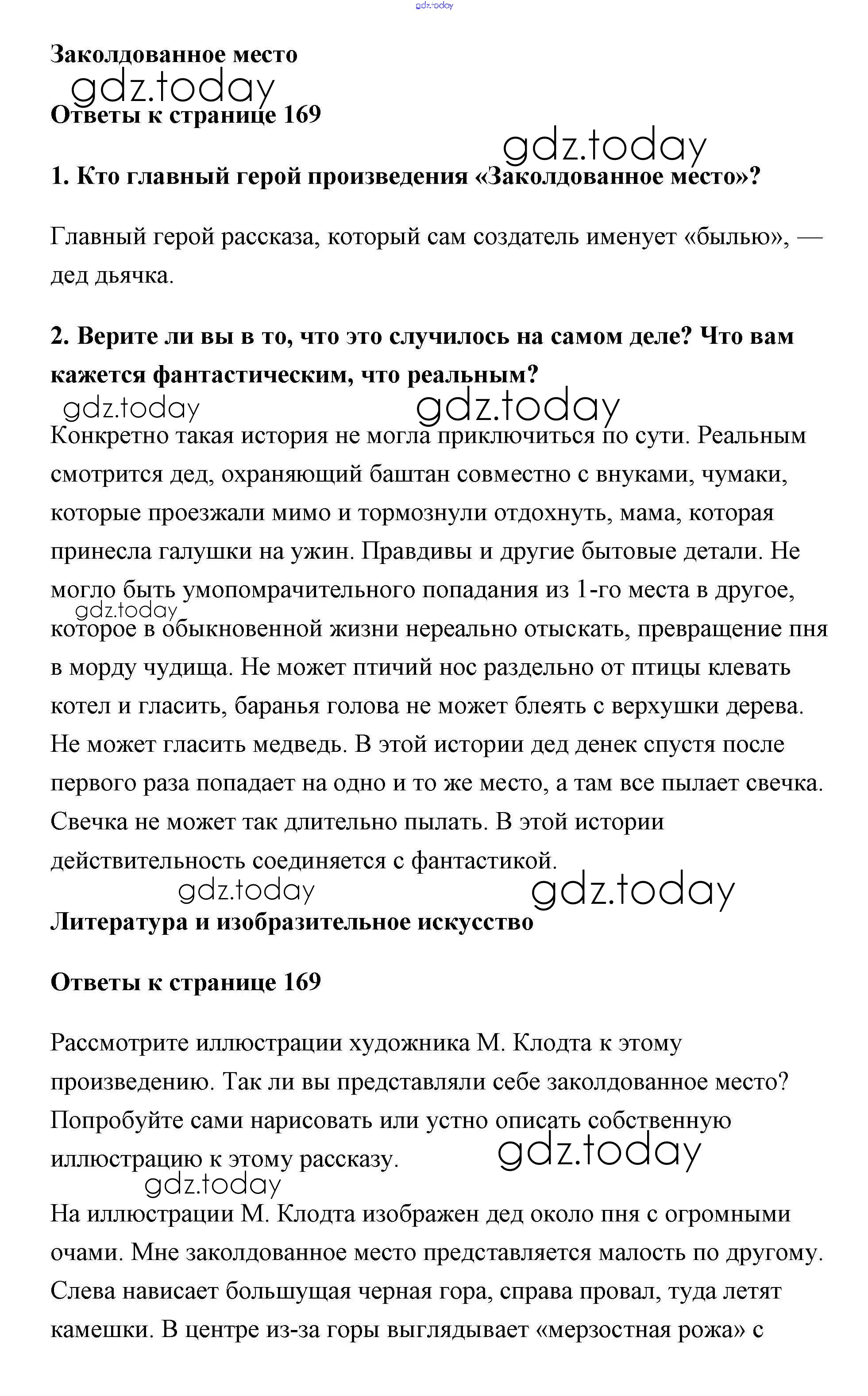 На страницах сайта gdz.today вы найдете учебный и вспомогательный материал, направленный на улучшения знаний школьной программы. ГДЗ - онлайн мир знаний Решение к части 1 (Страницы) 169 Учебнику по Литературе для 5 класса Коровина, Коровин Просвещение 2016