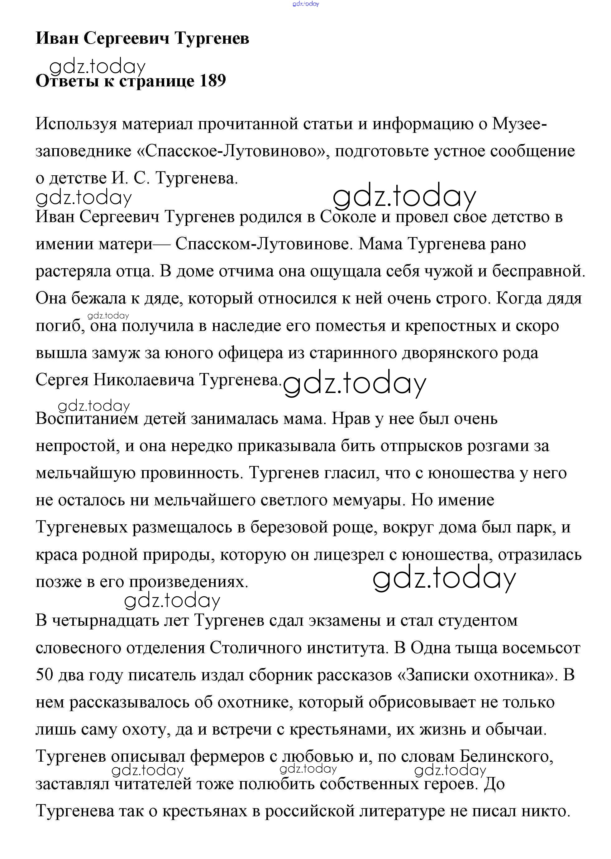 На страницах сайта gdz.today вы найдете учебный и вспомогательный материал, направленный на улучшения знаний школьной программы. ГДЗ - онлайн мир знаний Решение к части 1 (Страницы) 189 Учебнику по Литературе для 5 класса Коровина, Коровин Просвещение 2016
