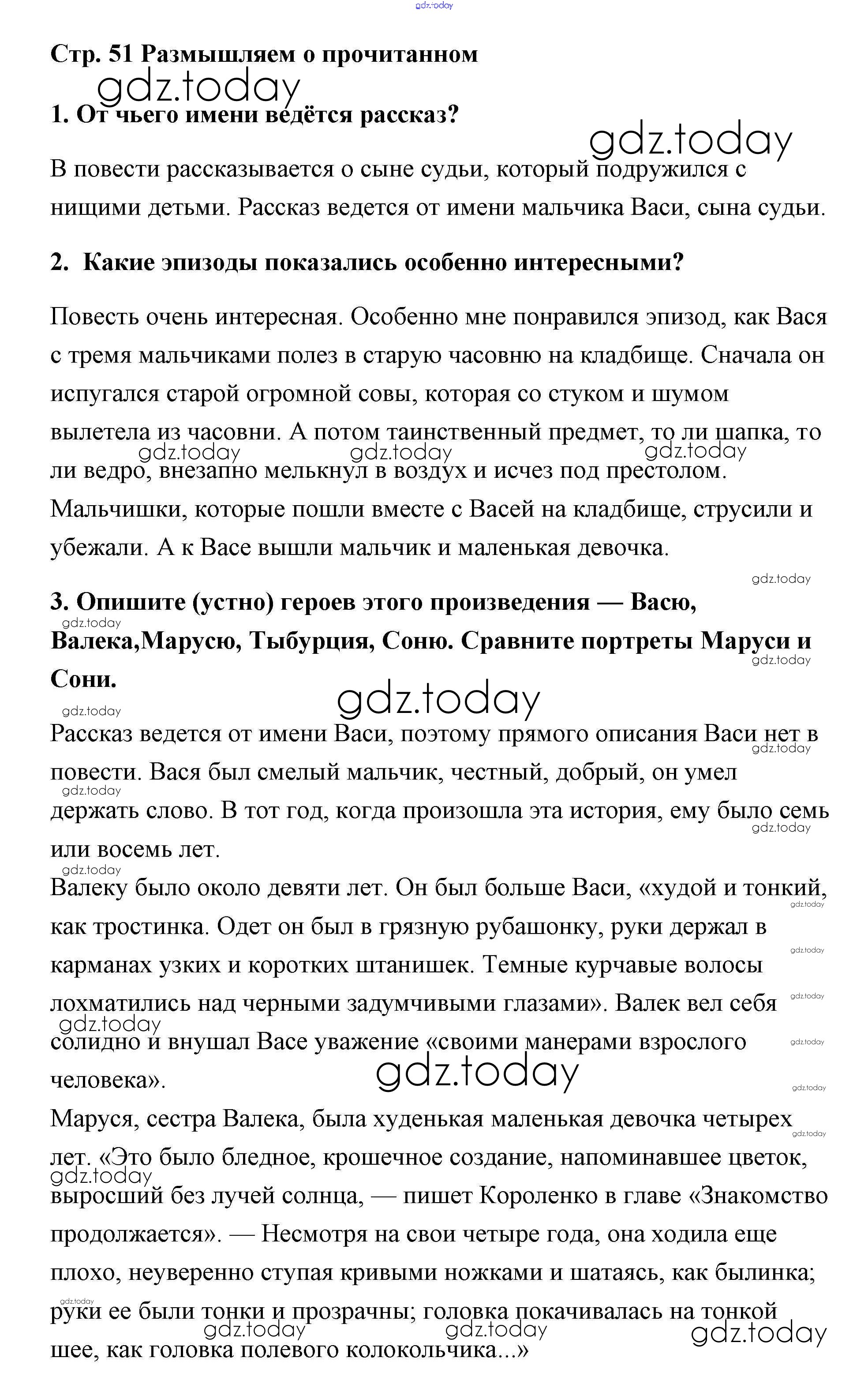 Ответы к Короленко (Страницы) Решение к части 2 (Темы) 51 Учебнику по Литературе для 5 класса Коровина, Коровин Просвещение 2016