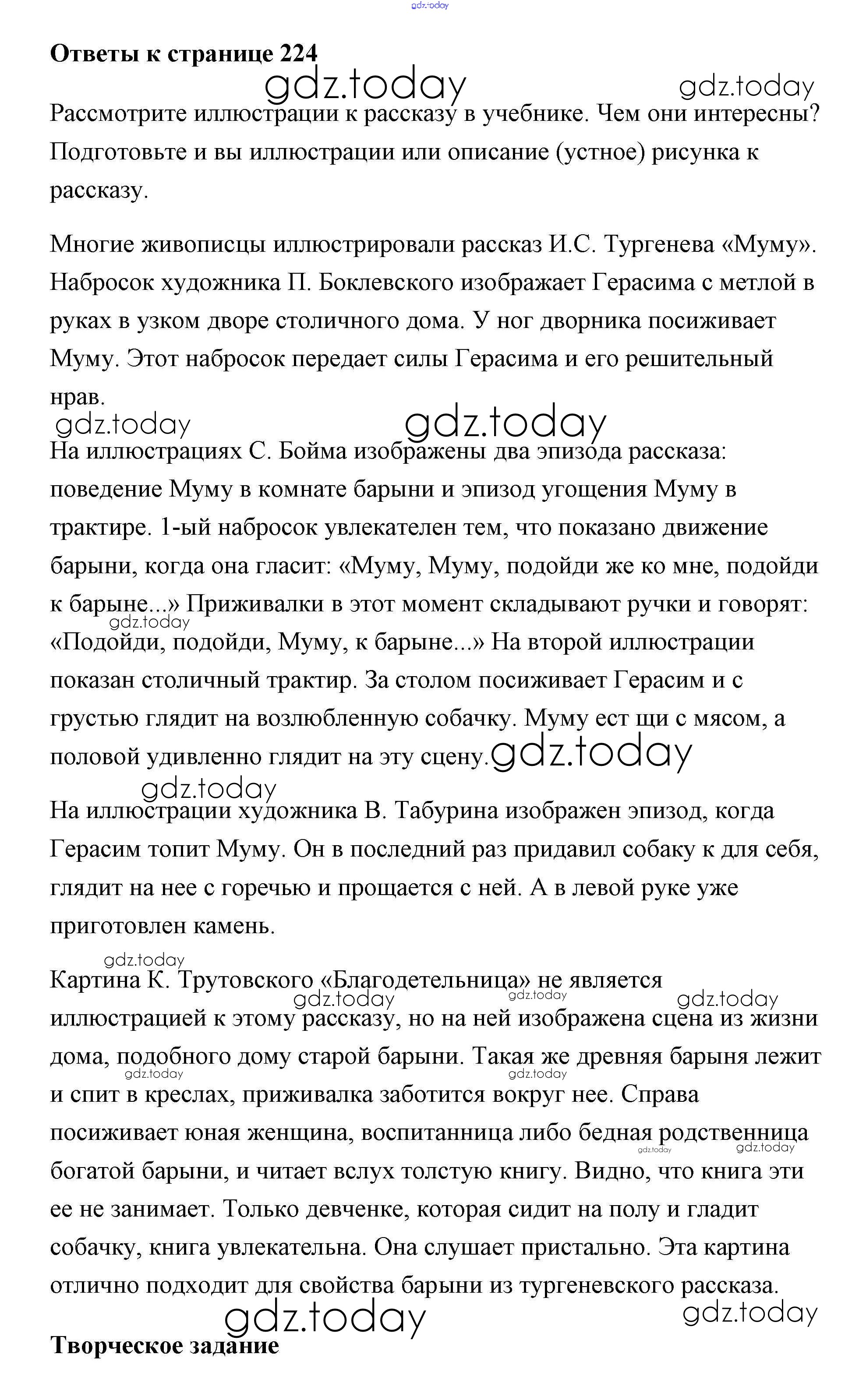На страницах сайта gdz.today вы найдете учебный и вспомогательный материал, направленный на улучшения знаний школьной программы. ГДЗ - онлайн мир знаний Решение к части 1 (Страницы) 224 Учебнику по Литературе для 5 класса Коровина, Коровин Просвещение 2016