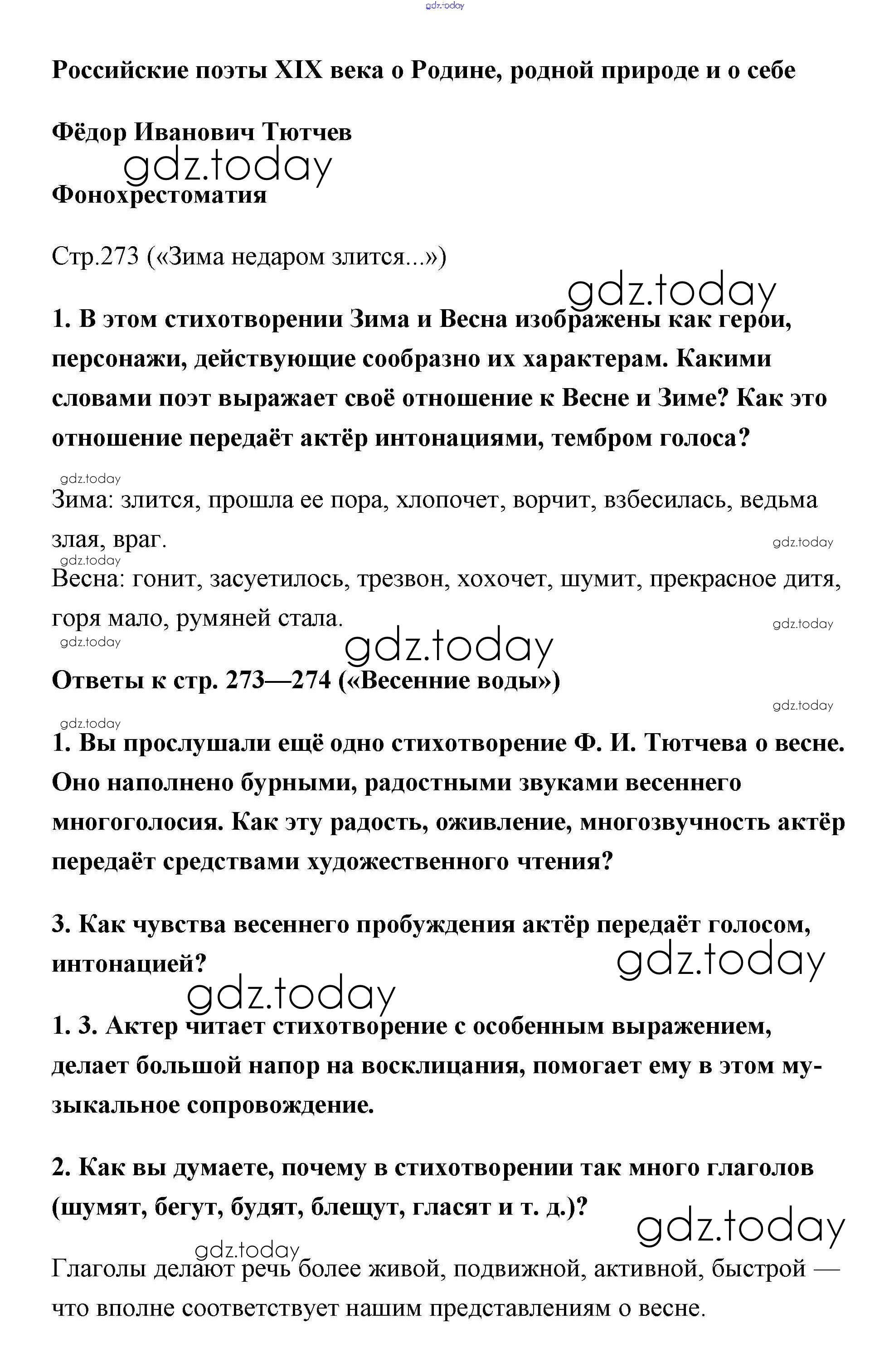 Ответы к Решение к части 1 (Страницы) 273 Учебнику по Литературе для 5 класса Коровина, Коровин Просвещение 2016