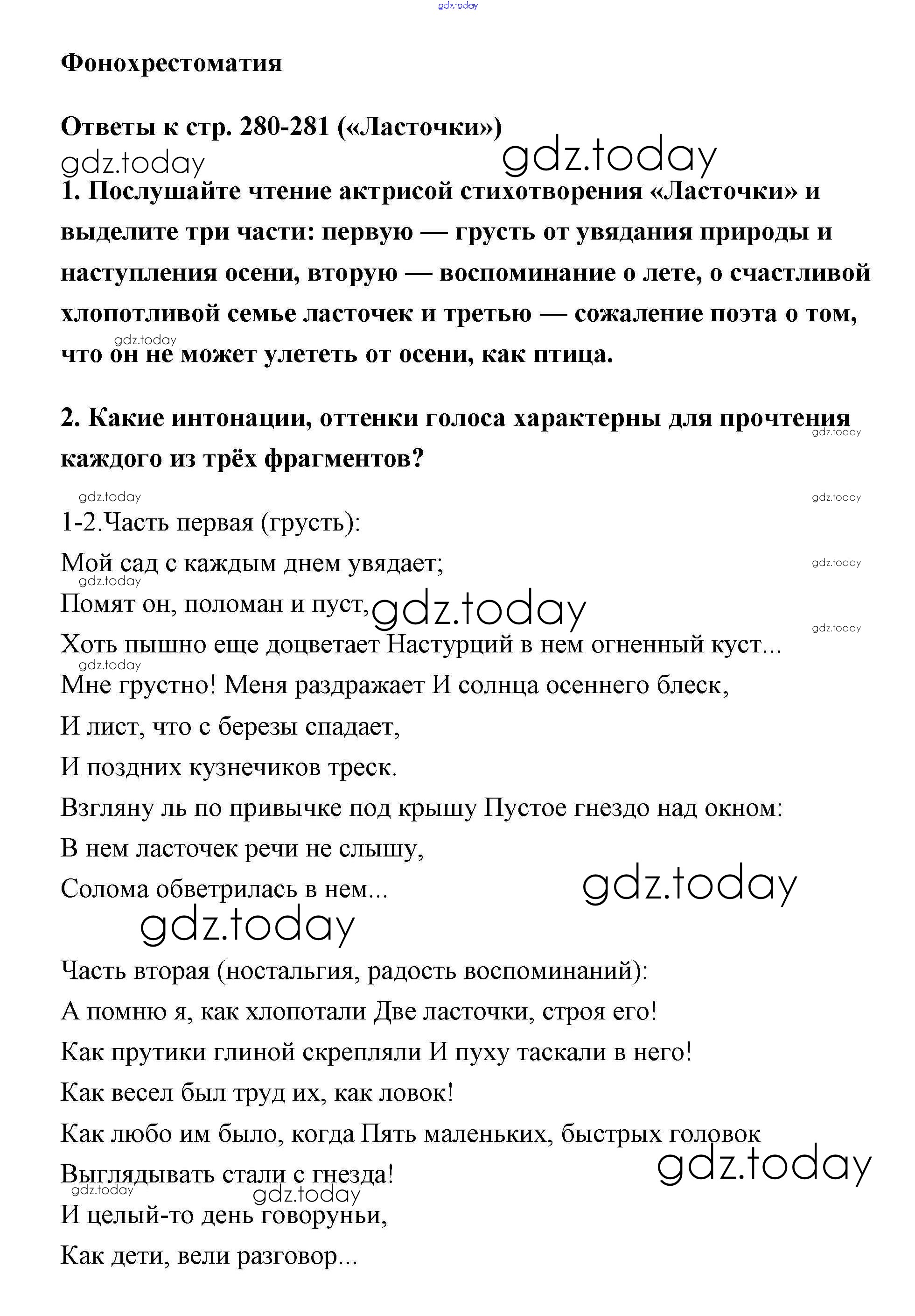 Ответы к Решение к части 1 (Страницы) 280 Учебнику по Литературе для 5 класса Коровина, Коровин Просвещение 2016