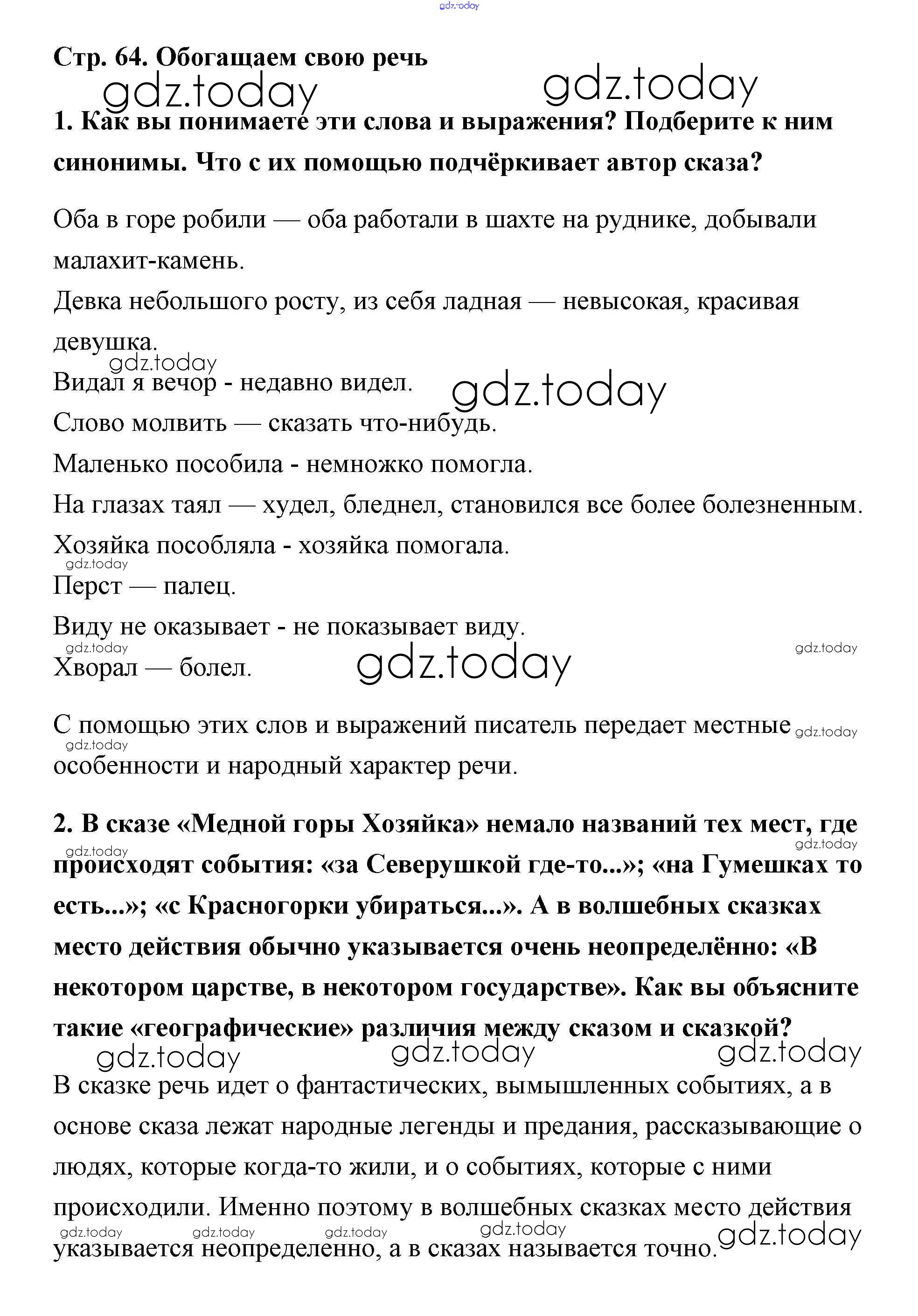 Ответы к Бажов (Страницы) Решение к части 2 (Темы) 64 Учебнику по Литературе для 5 класса Коровина, Коровин Просвещение 2016
