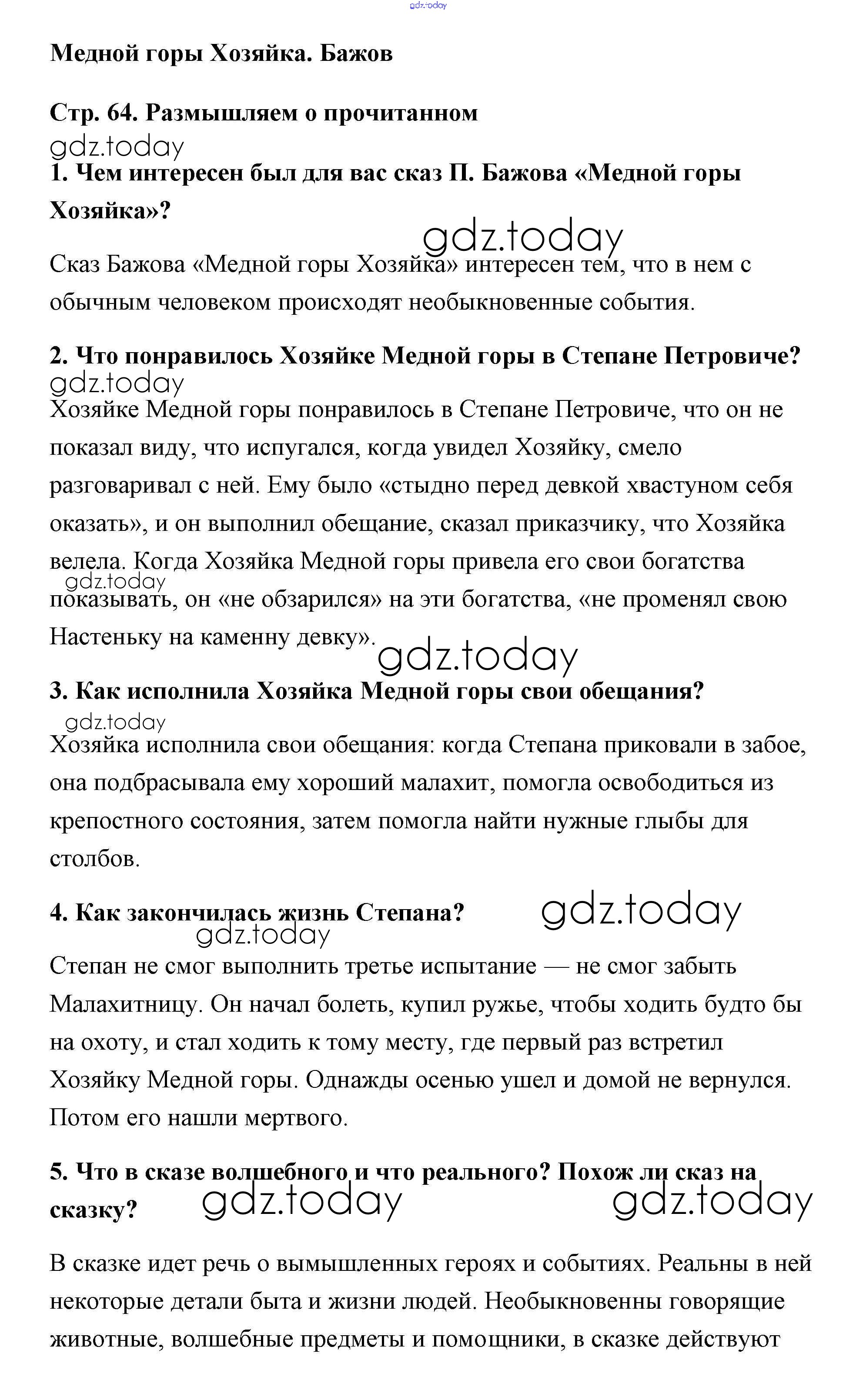 На страницах сайта gdz.today вы найдете учебный и вспомогательный материал, направленный на улучшения знаний школьной программы. ГДЗ - онлайн мир знаний Бажов (Страницы) Решение к части 2 (Темы) 64 Учебнику по Литературе для 5 класса Коровина, Коровин Просвещение 2016