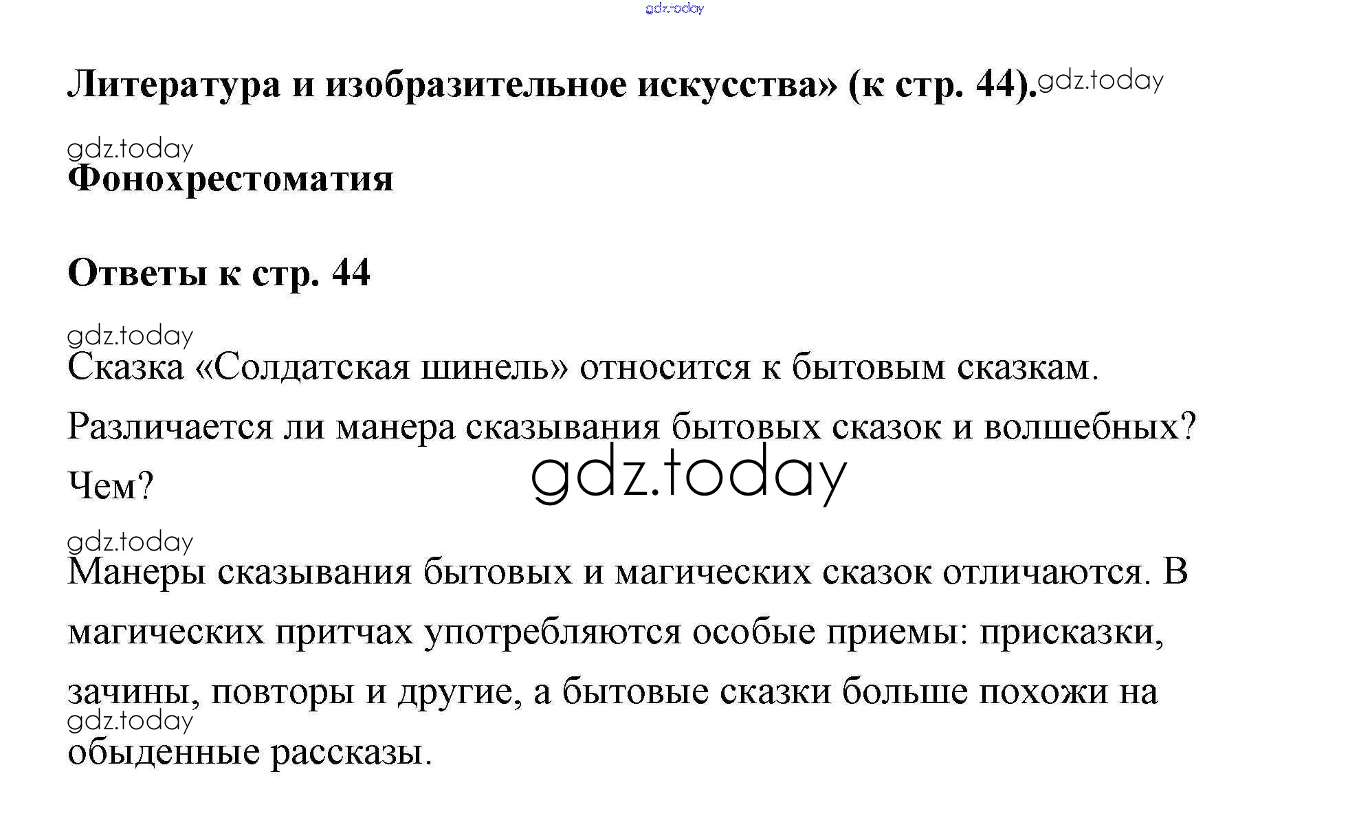 На страницах сайта gdz.today вы найдете учебный и вспомогательный материал, направленный на улучшения знаний школьной программы. ГДЗ - онлайн мир знаний Решение к части 1 (Страницы) 44 Учебнику по Литературе для 5 класса Коровина, Коровин Просвещение 2016