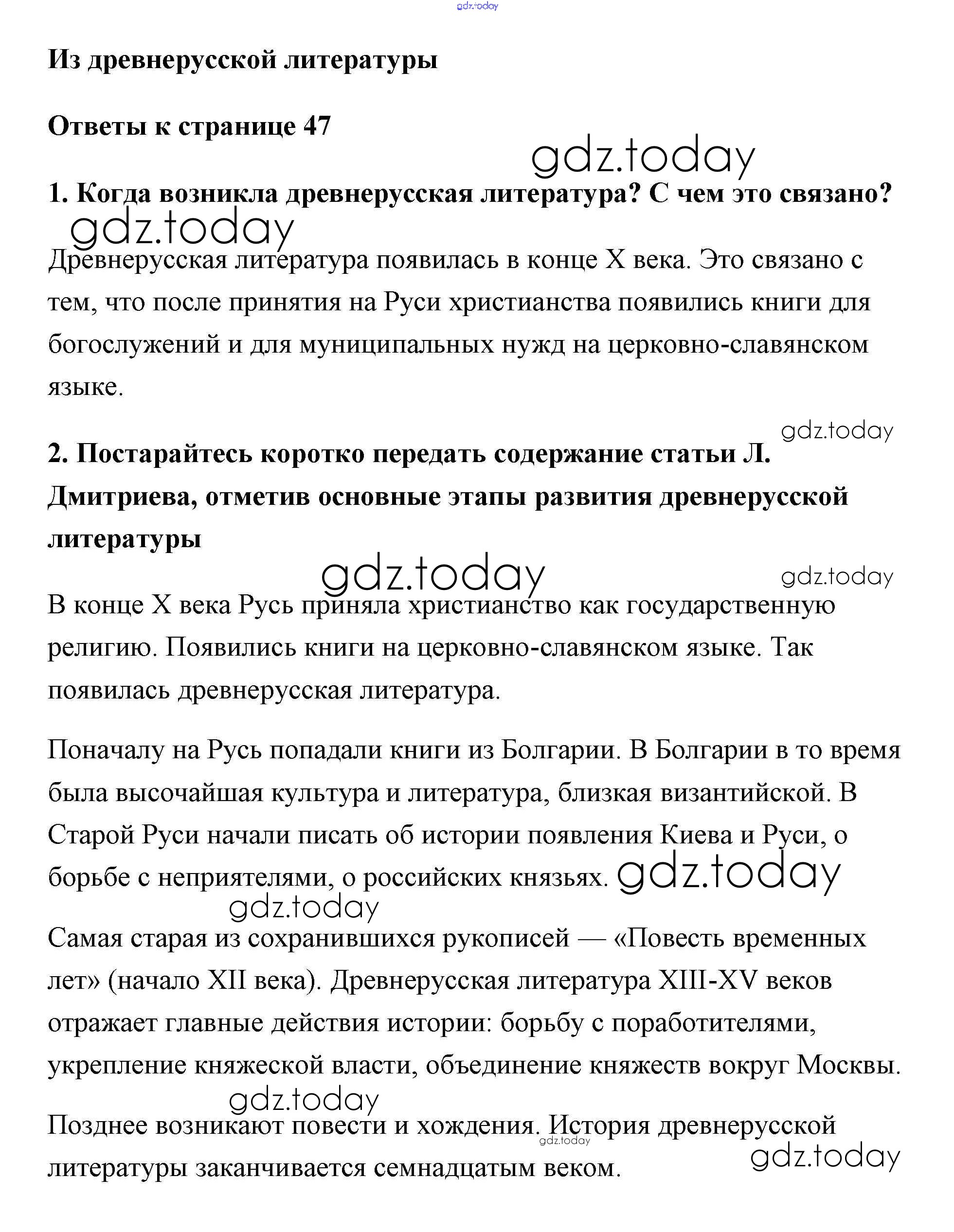 На страницах сайта gdz.today вы найдете учебный и вспомогательный материал, направленный на улучшения знаний школьной программы. ГДЗ - онлайн мир знаний Решение к части 1 (Страницы) 47 Учебнику по Литературе для 5 класса Коровина, Коровин Просвещение 2016